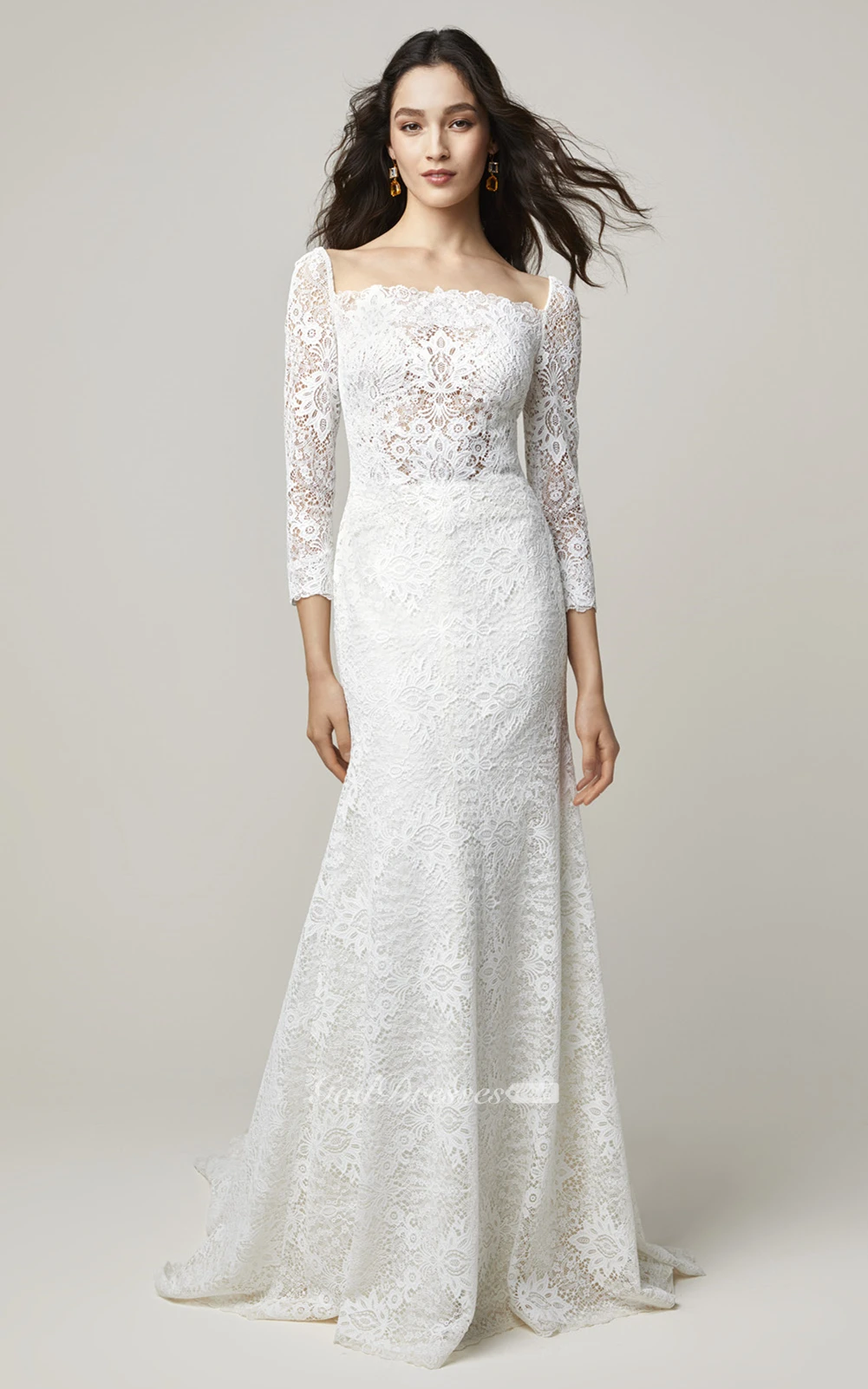 Mermaid Sheath Ethereal Lace Bridal Dress with Appliques