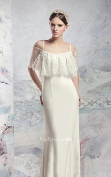 Mermaid Short Spaghetti Straps Bell Draping Pleats Tiers Zipper Straps Chiffon Lace Dress