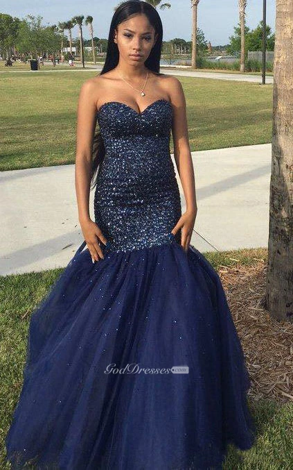 Mermaid Sweetheart Brush Train Tulle Sequins Dress