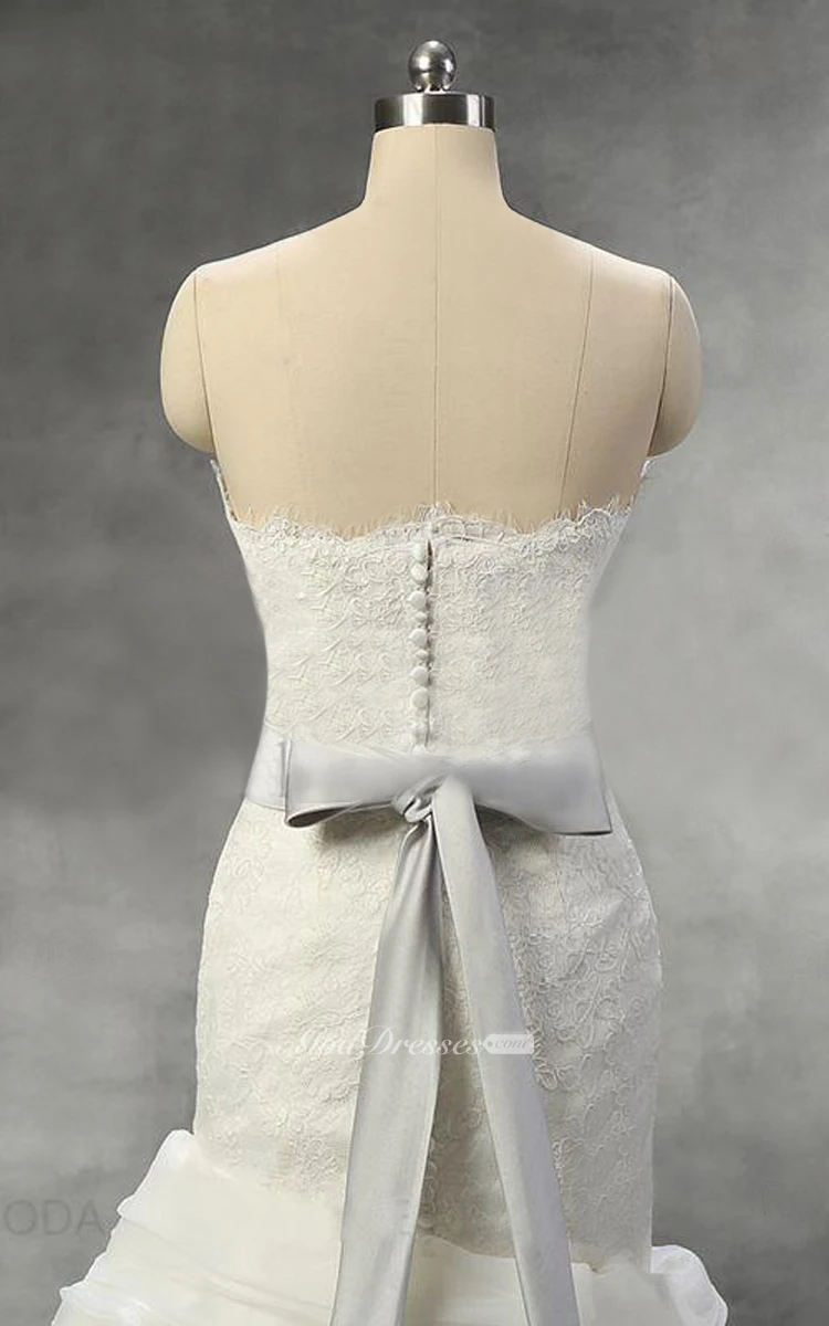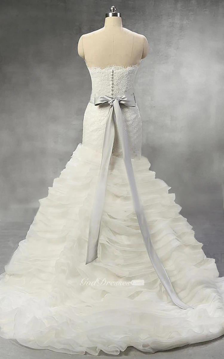 Mermaid Sweetheart Sleeveless Cap Dropped Sash Lace Organza Dress