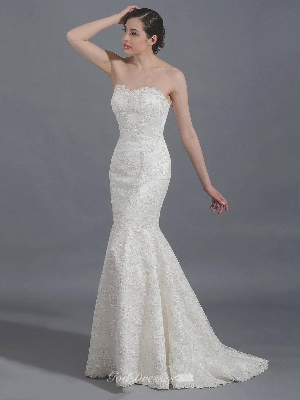 Mermaid Sweetheart Strapless Long Lace Dress With Lace-Up Back