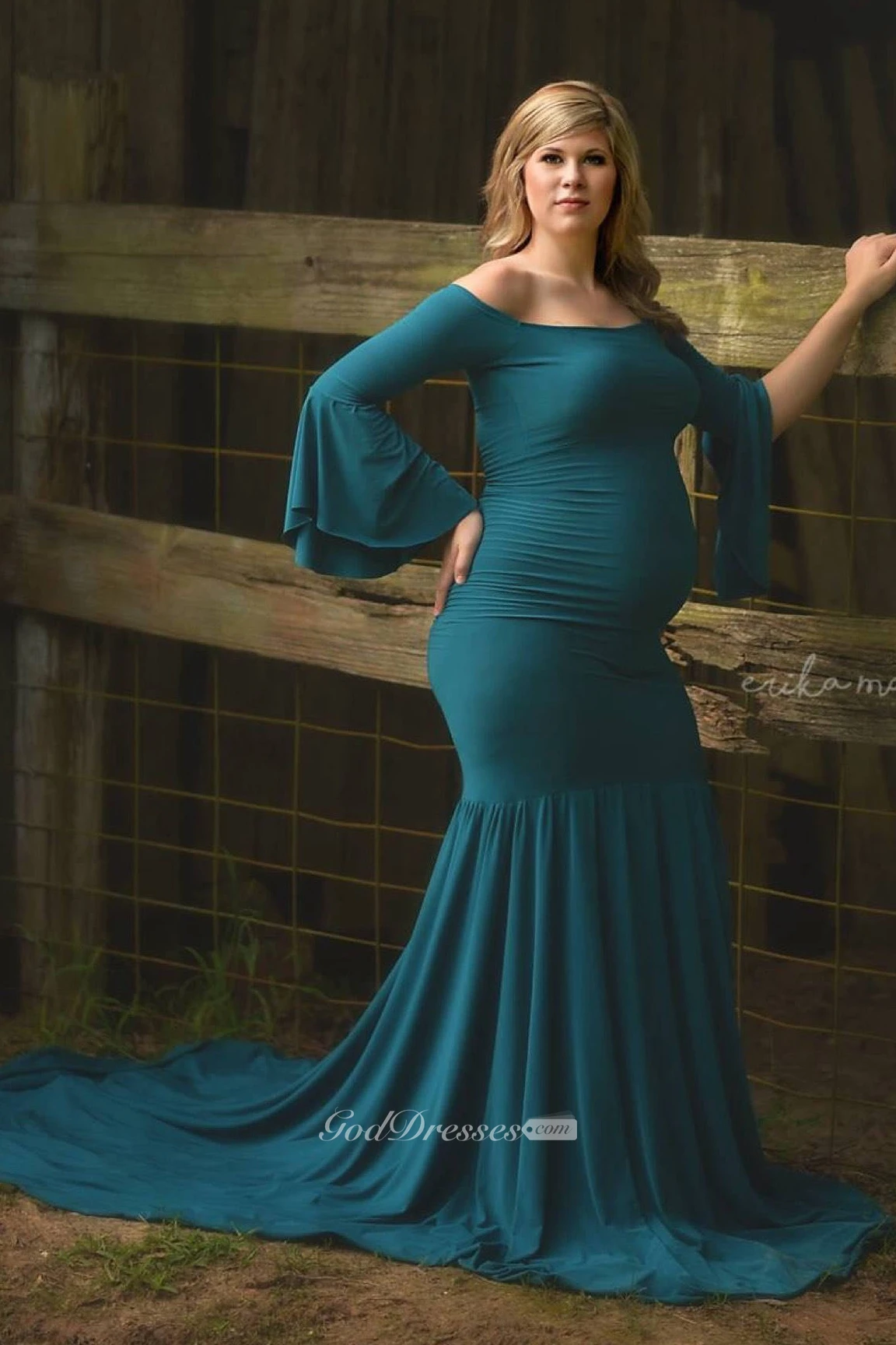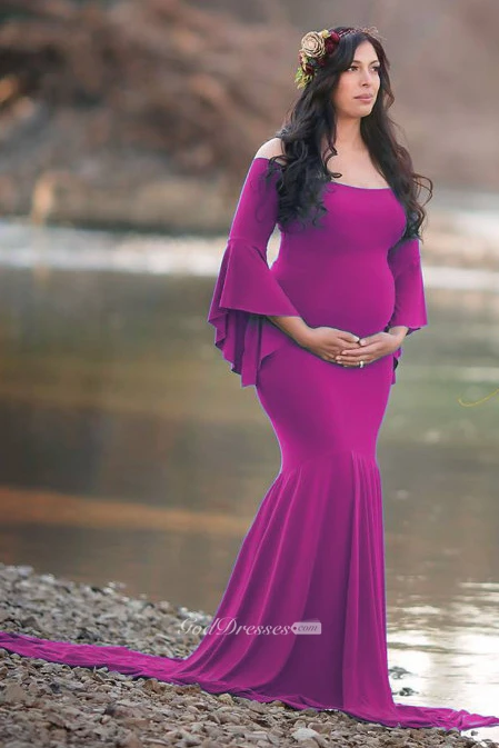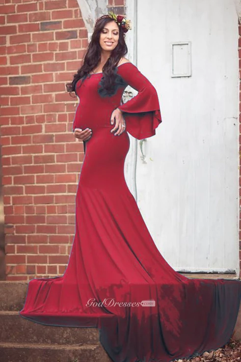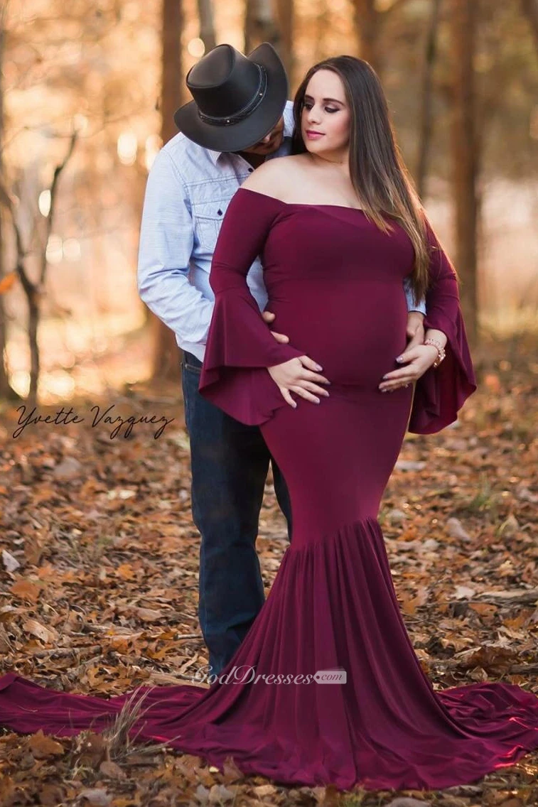 Mermaid Trumpet Bell Long Sleeve Empire Maternity Dress