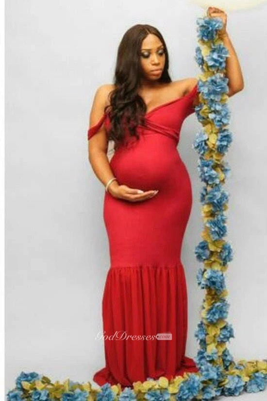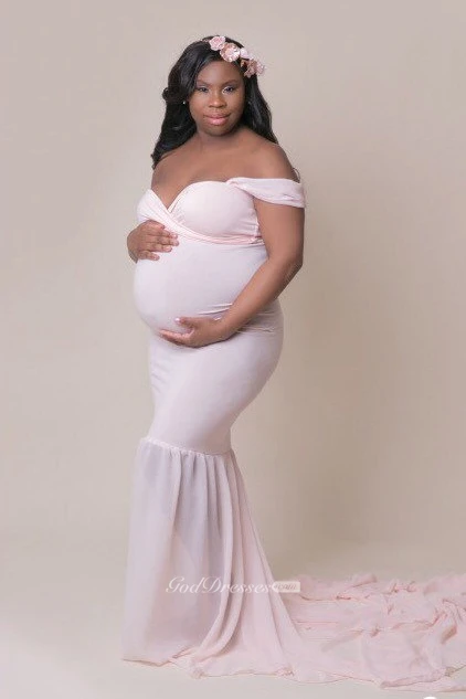Mermaid Trumpet Cap Short Sleeve Empire Maternity Dress