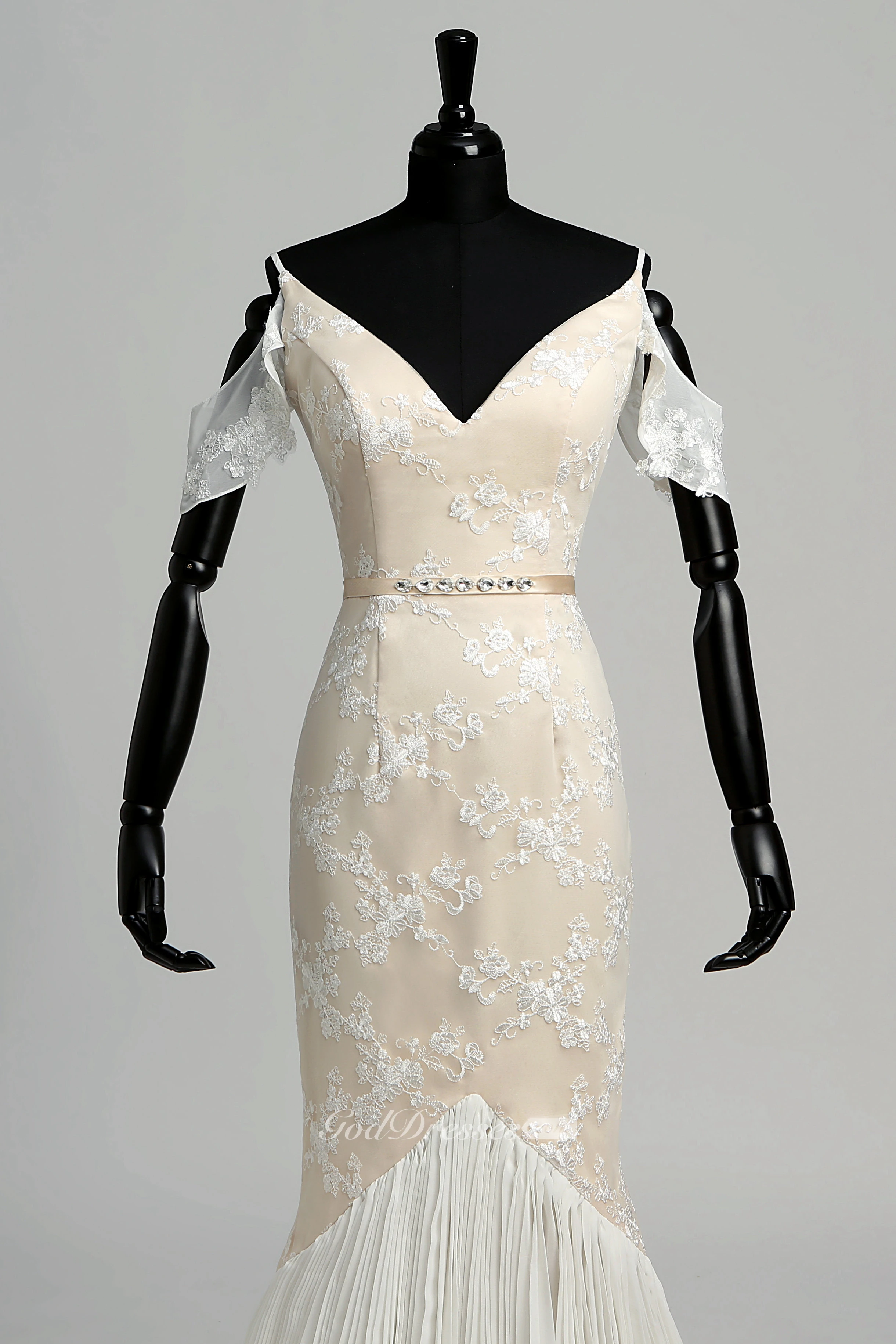 Mermaid Trumpet Celebrity T-shirt Short Sleeve Wedding Dress