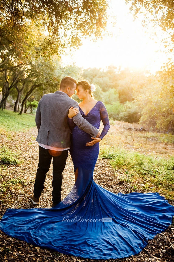 Mermaid Trumpet Illusion Long Sleeve Empire Maternity Dress