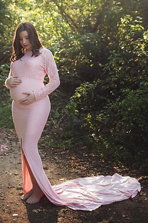 Mermaid Trumpet Illusion Long Sleeve Empire Maternity Dress