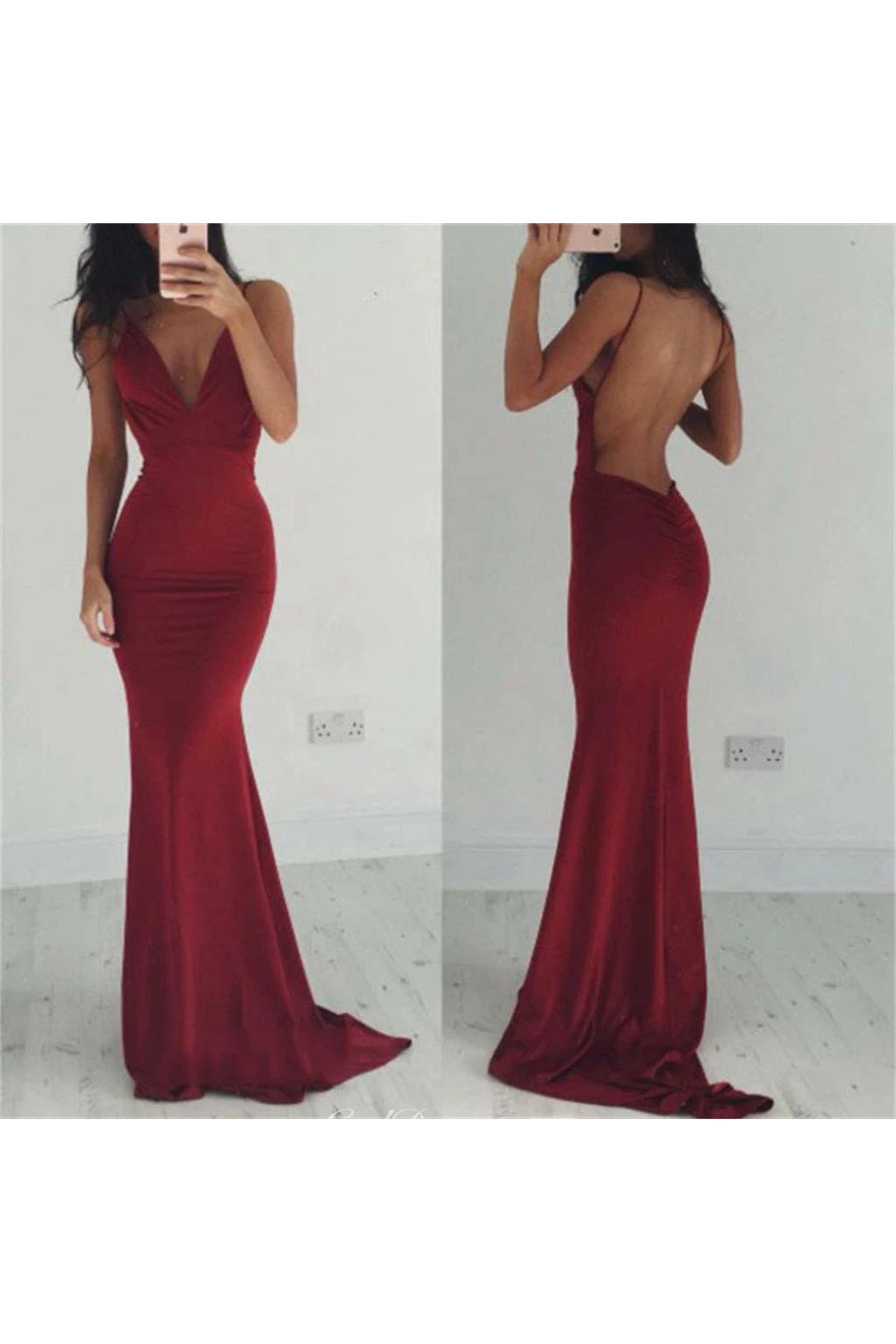 Mermaid Trumpet Jersey Spaghetti Sleeveless Open Back Straps Dress