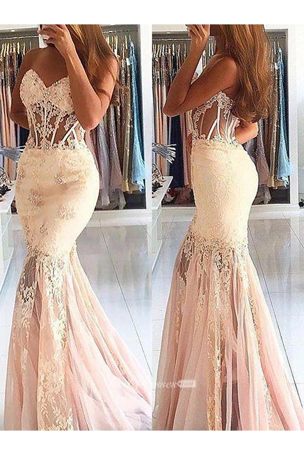 Mermaid Trumpet Lace Tulle Sweetheart Sleeveless Zipper Dress