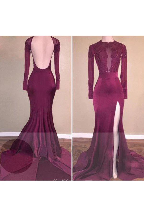 Mermaid Trumpet Satin Lace High Neck Long Sleeve Open Back Backless Dress