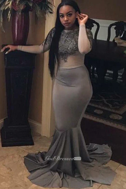 Mermaid Trumpet Satin Lace High Neck Long Sleeve Zipper Dress