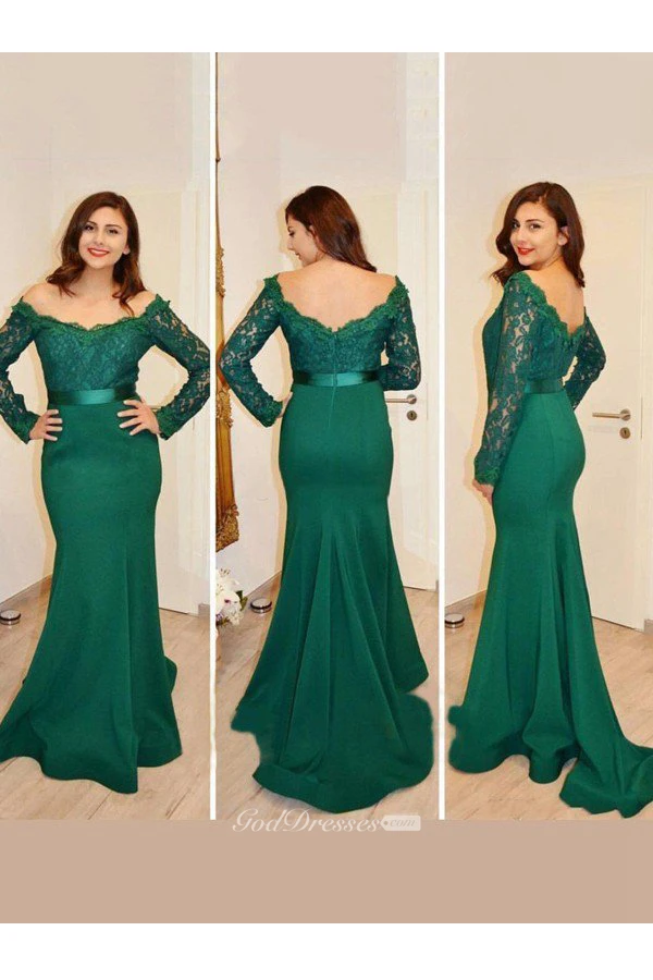 Mermaid Trumpet Satin Lace Off-the-shoulder Long Sleeve Zipper Low-V Back Dress