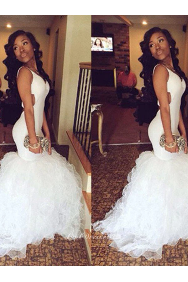 Mermaid Trumpet Satin Organza V-neck Sleeveless Zipper Dress
