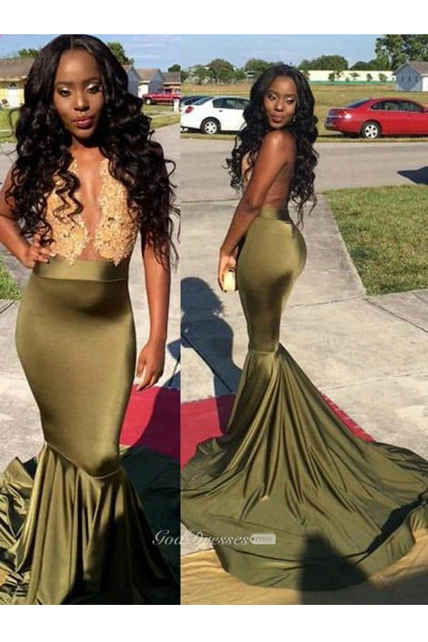 Mermaid Trumpet Satin Scoop Sleeveless Illusion Dress