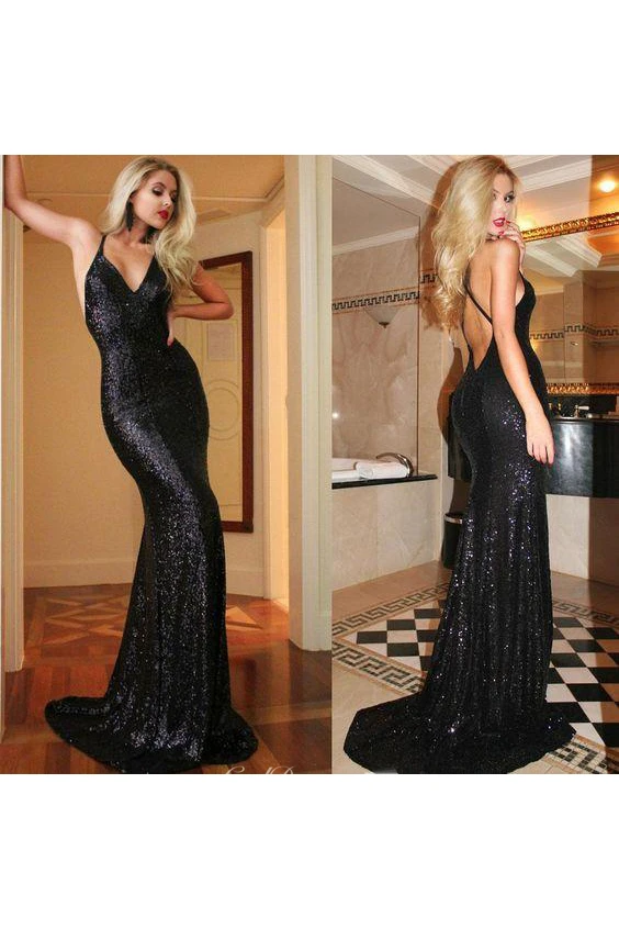 Mermaid Trumpet Sequins Spaghetti Sleeveless Open Back Straps Dress