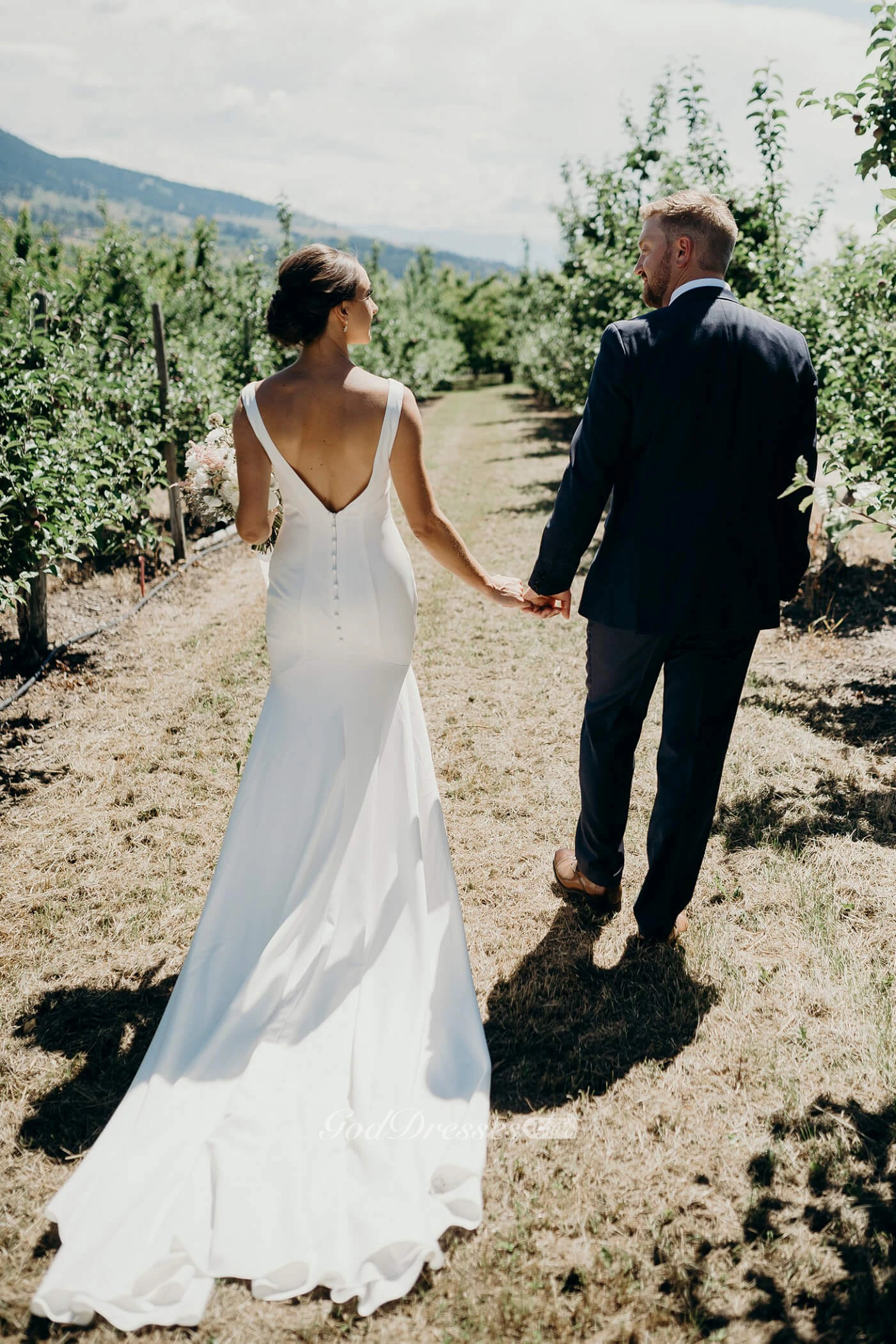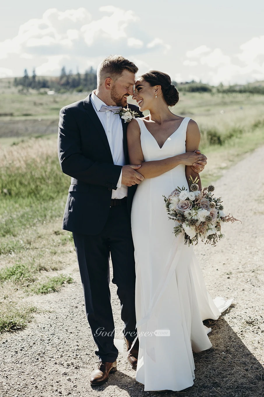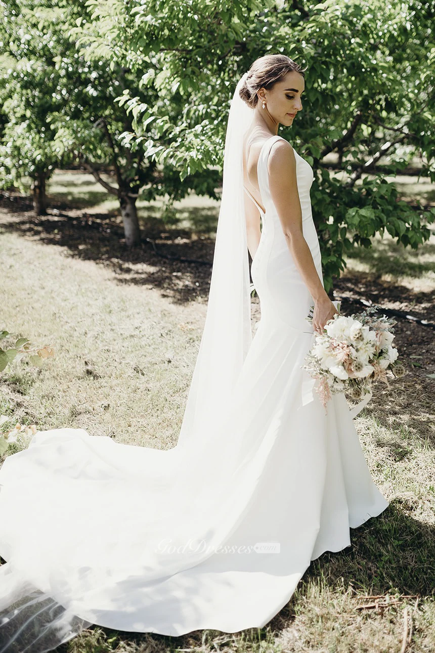 Mermaid V-neck Sleeveless Gown With Buttons And Open Back