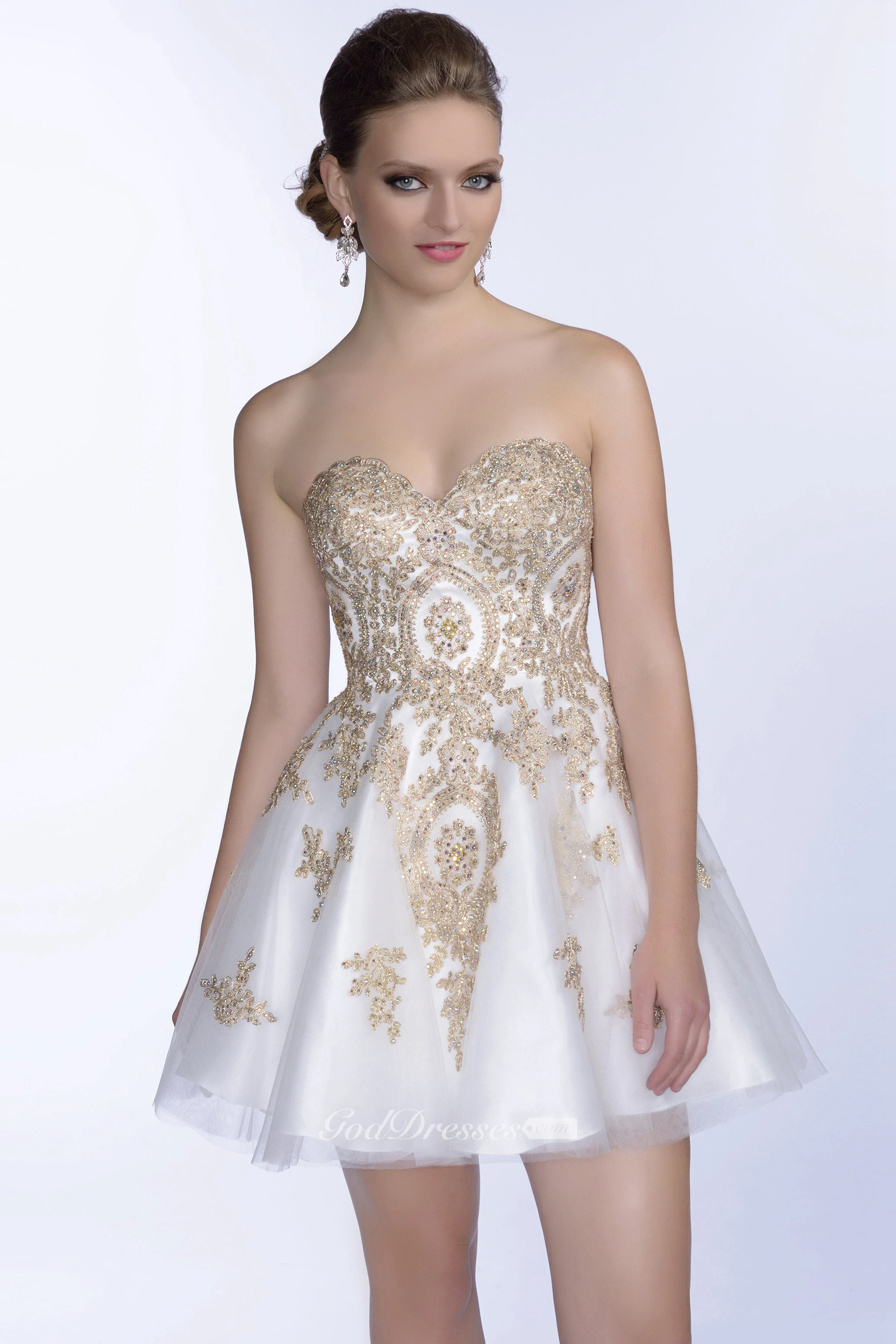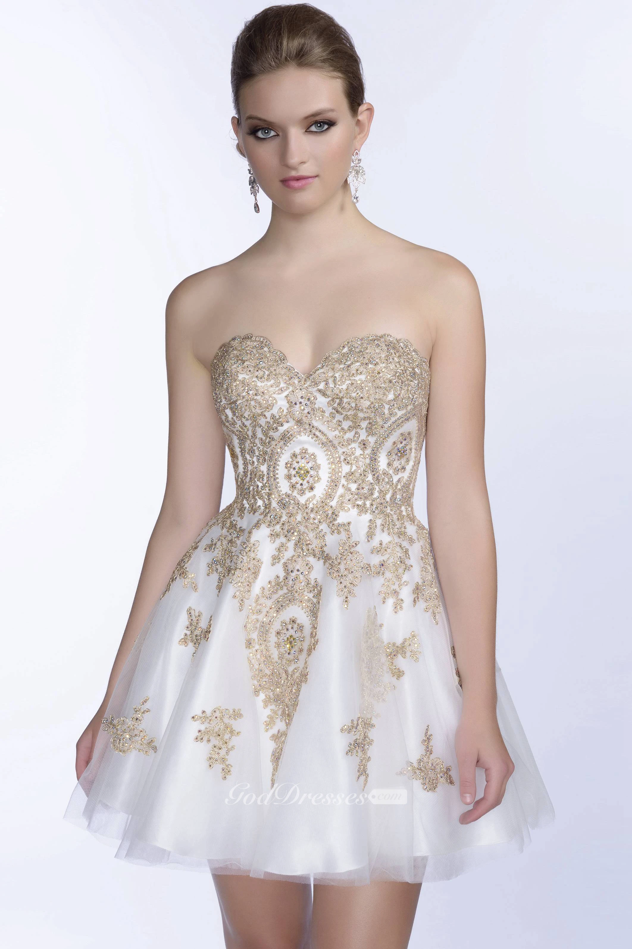 Mini A-Line Sweetheart Metallic Prom Dress With Beaded Appliques