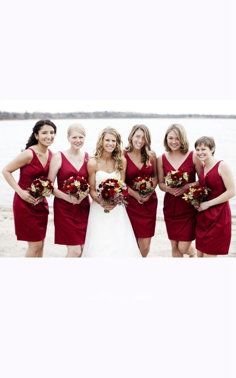 Mini Short V-neck Sleeveless Taffeta Sheath Dress