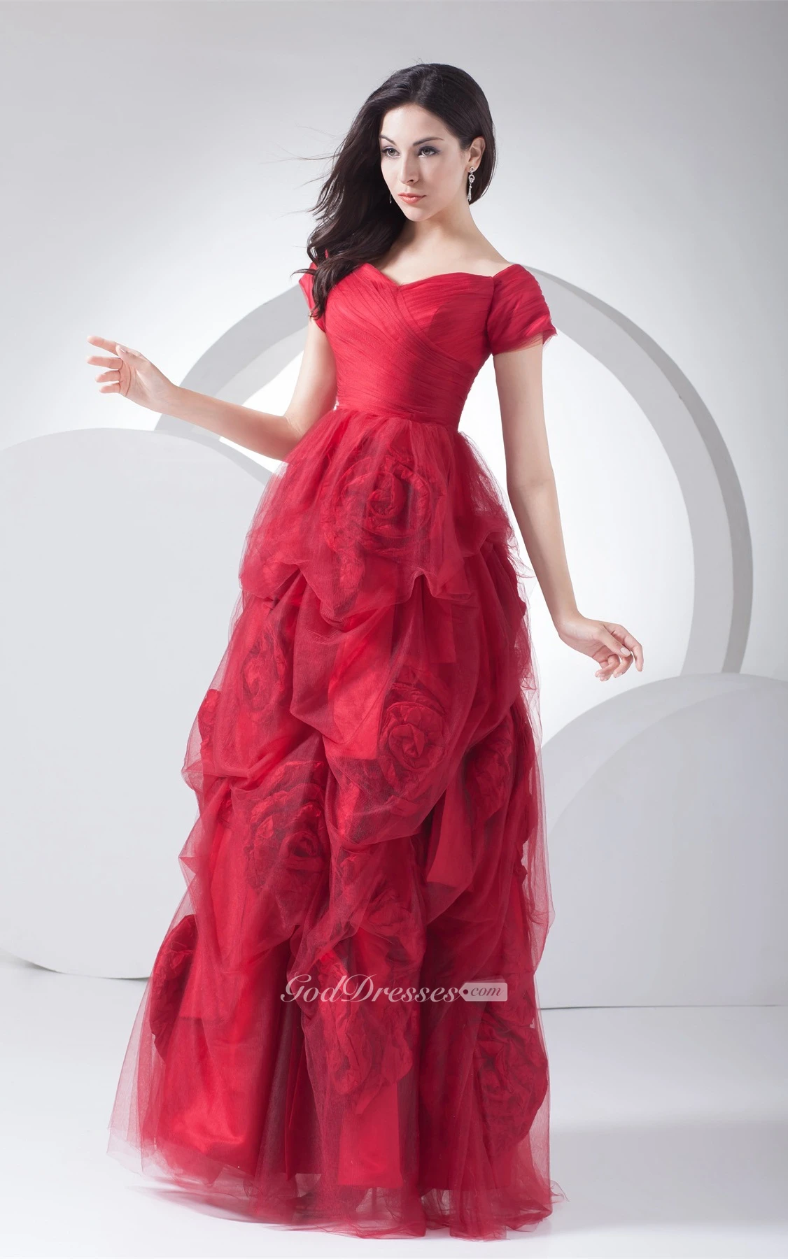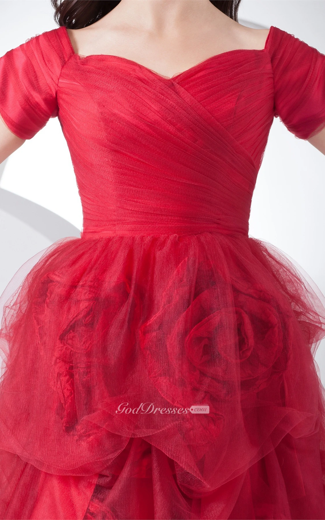 Mini-Sleeve A-Line Pick-Up Flower and Gown With Ruching