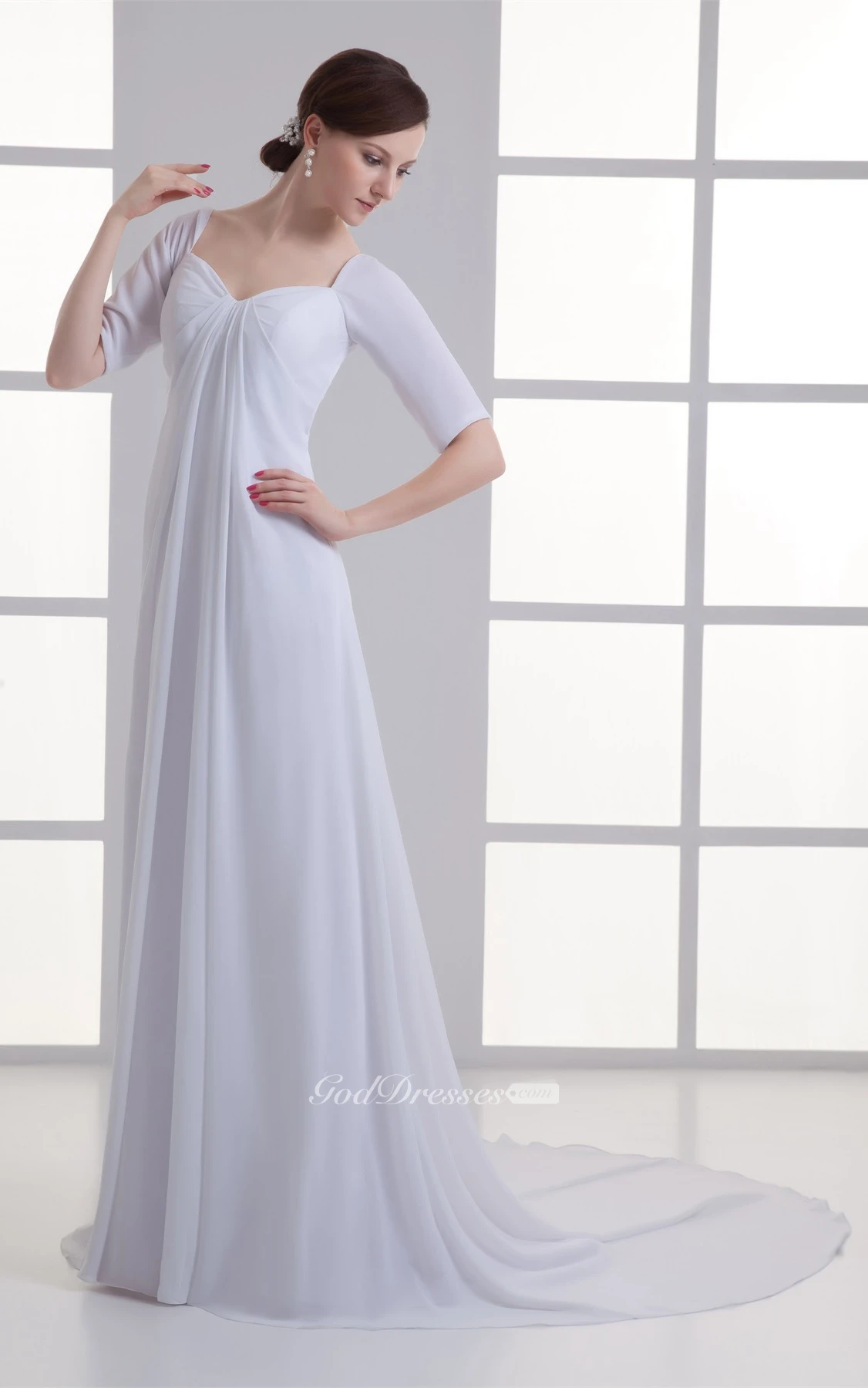 Mini-Sleeve Chiffon Floor-Length Empire Brush Train and Dress With Draping
