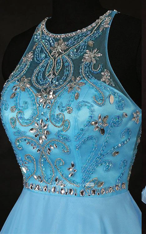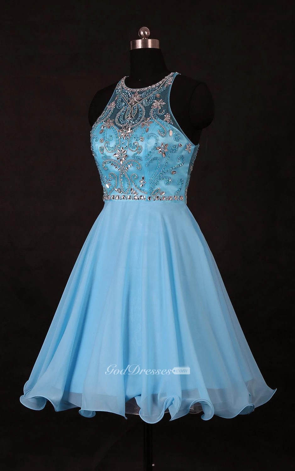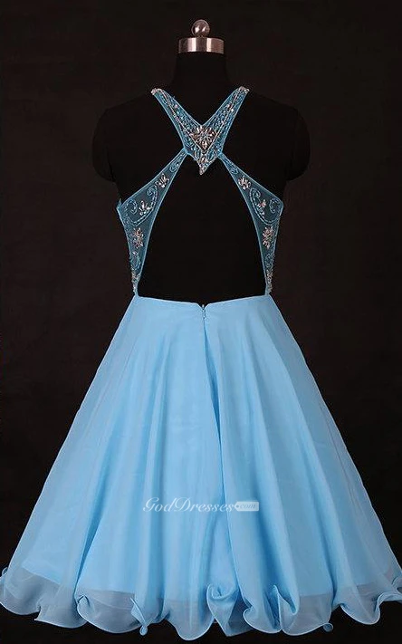 Mini Sleevelss Chiffon Dress With Beading And Keyhole Back