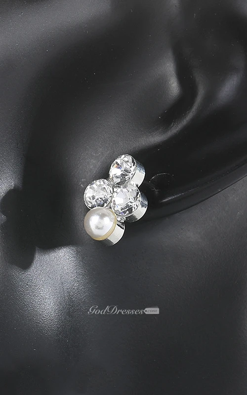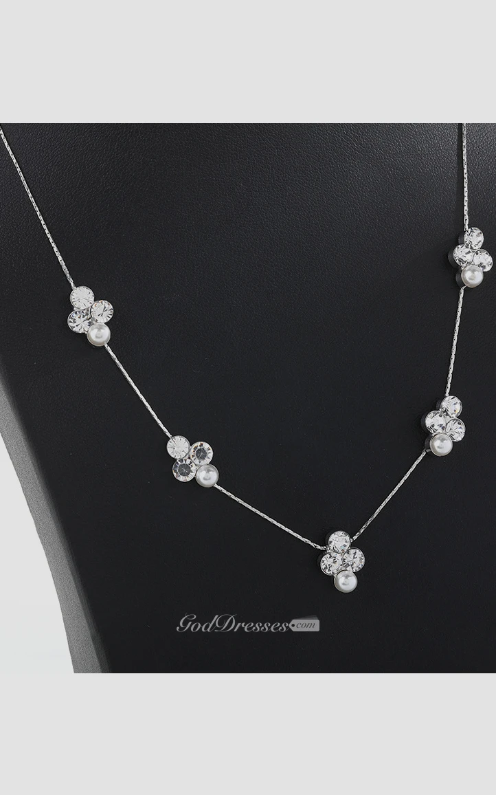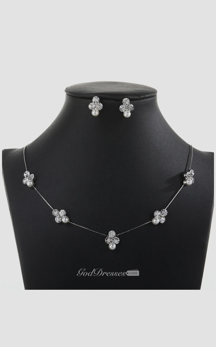 Minimalistic Flower Rhinestone Design Necklace and Earrings Jewelry Set