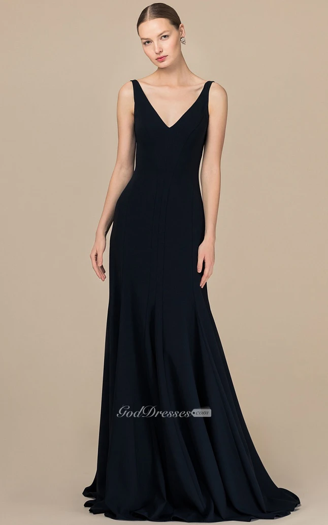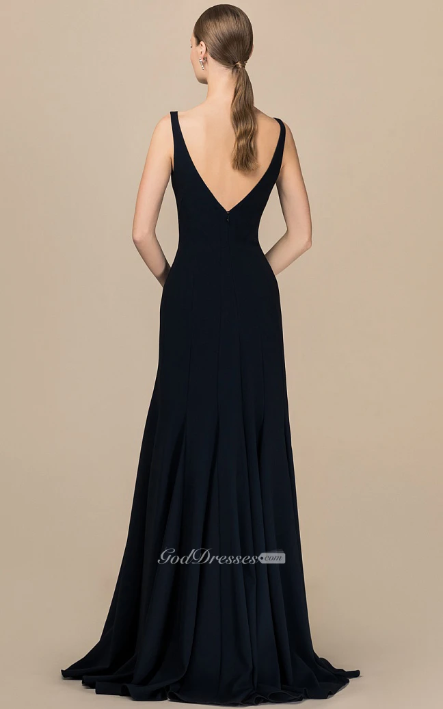 Modern A Line Satin V-neck Floor-length Backless Prom Dress
