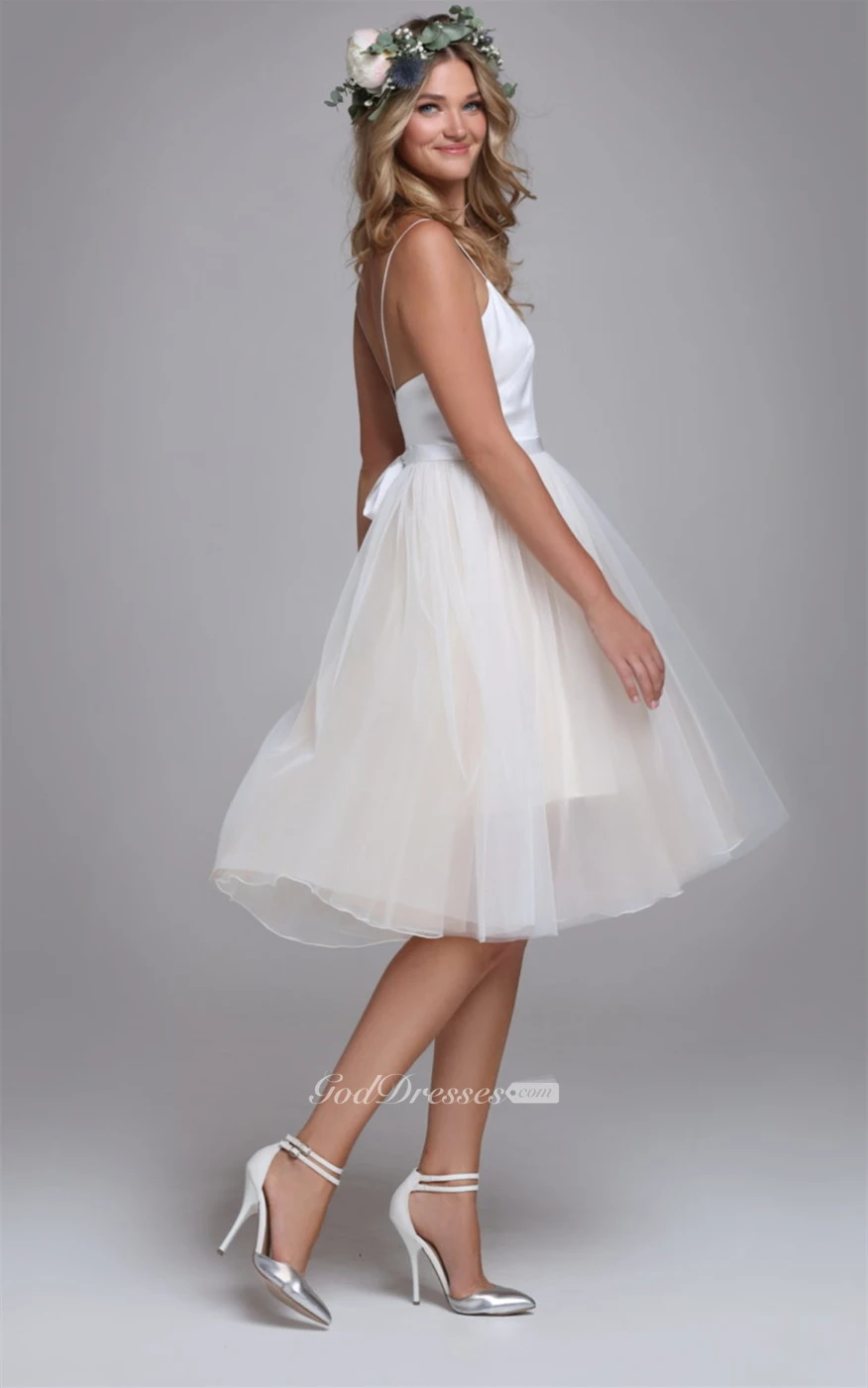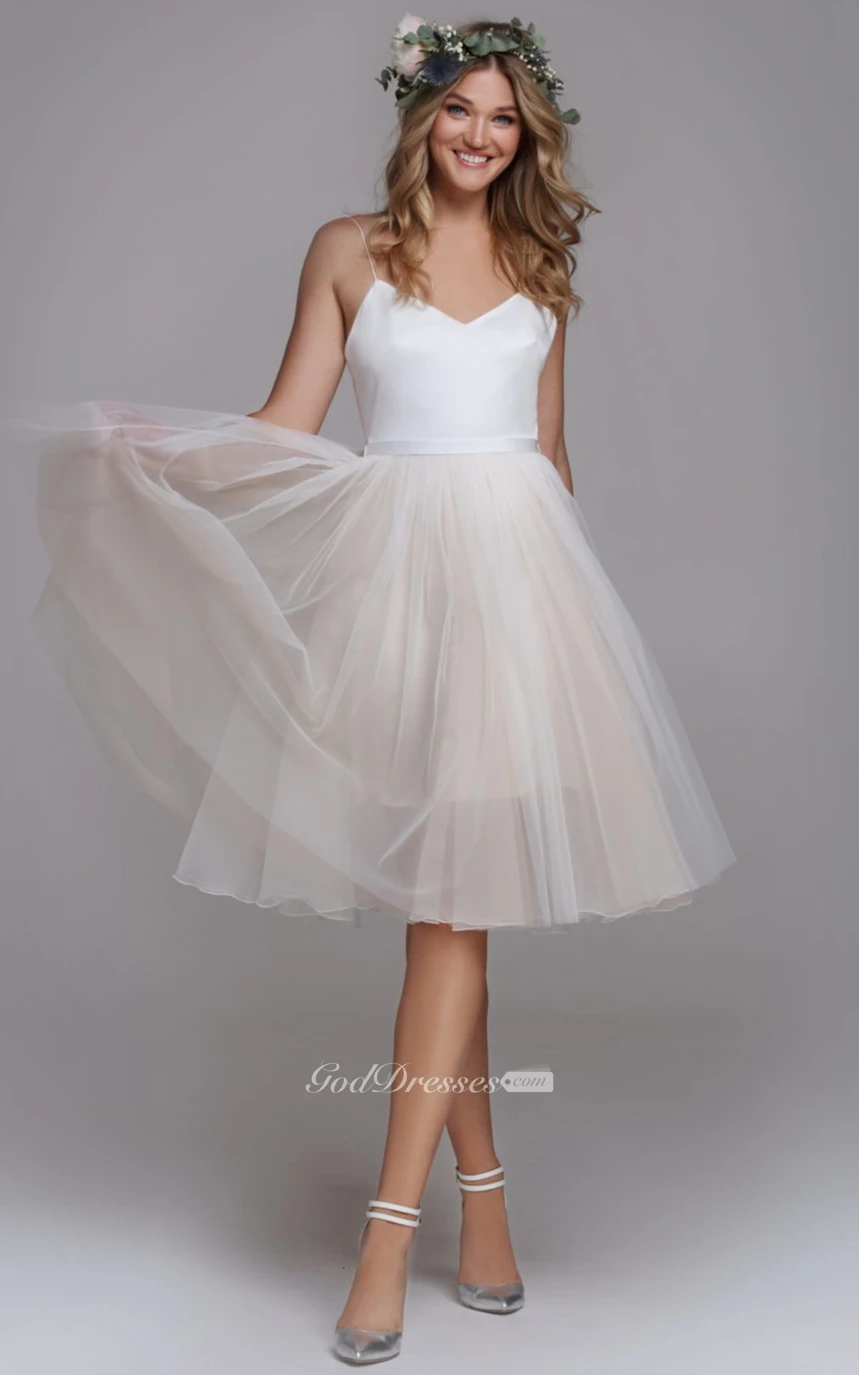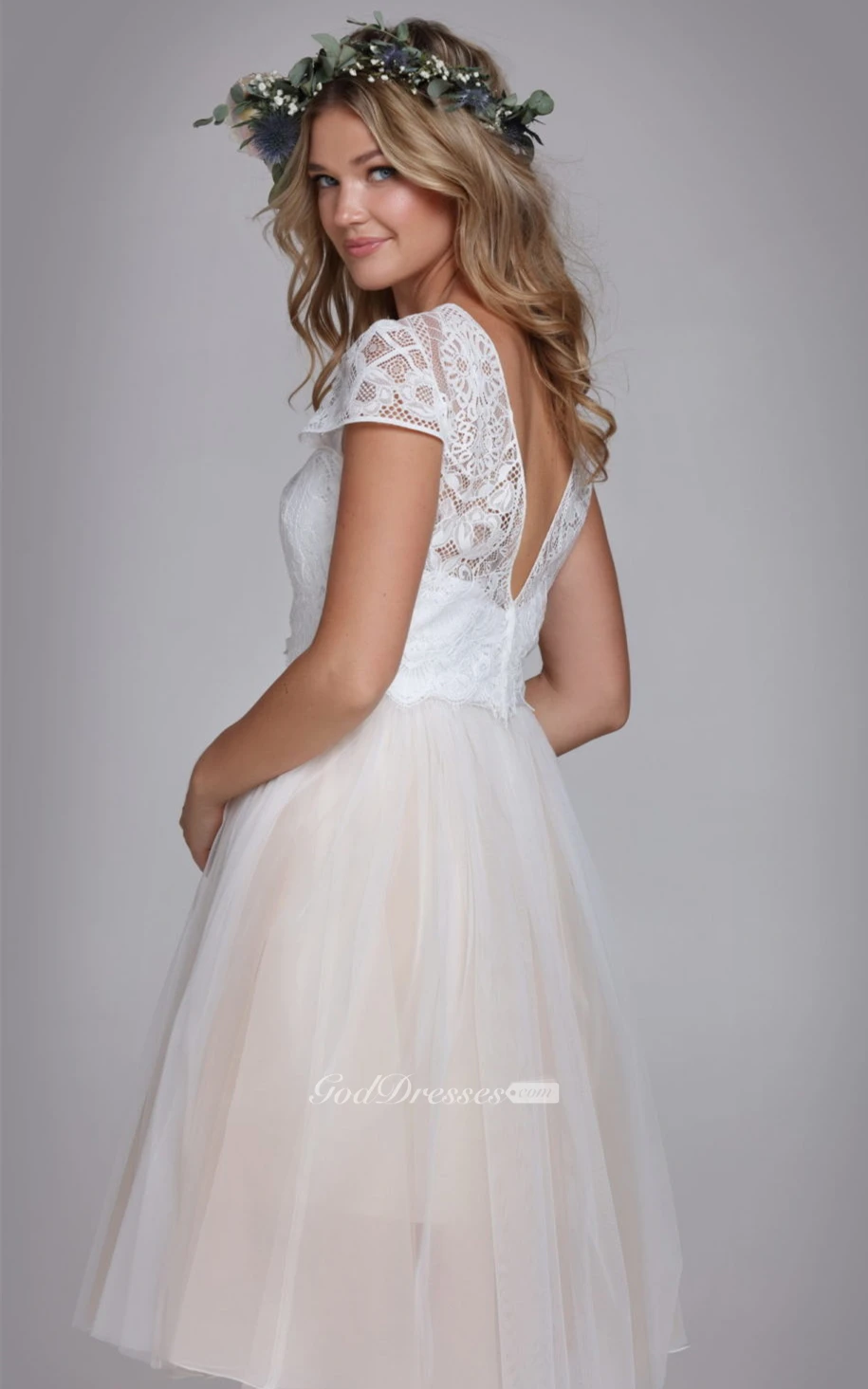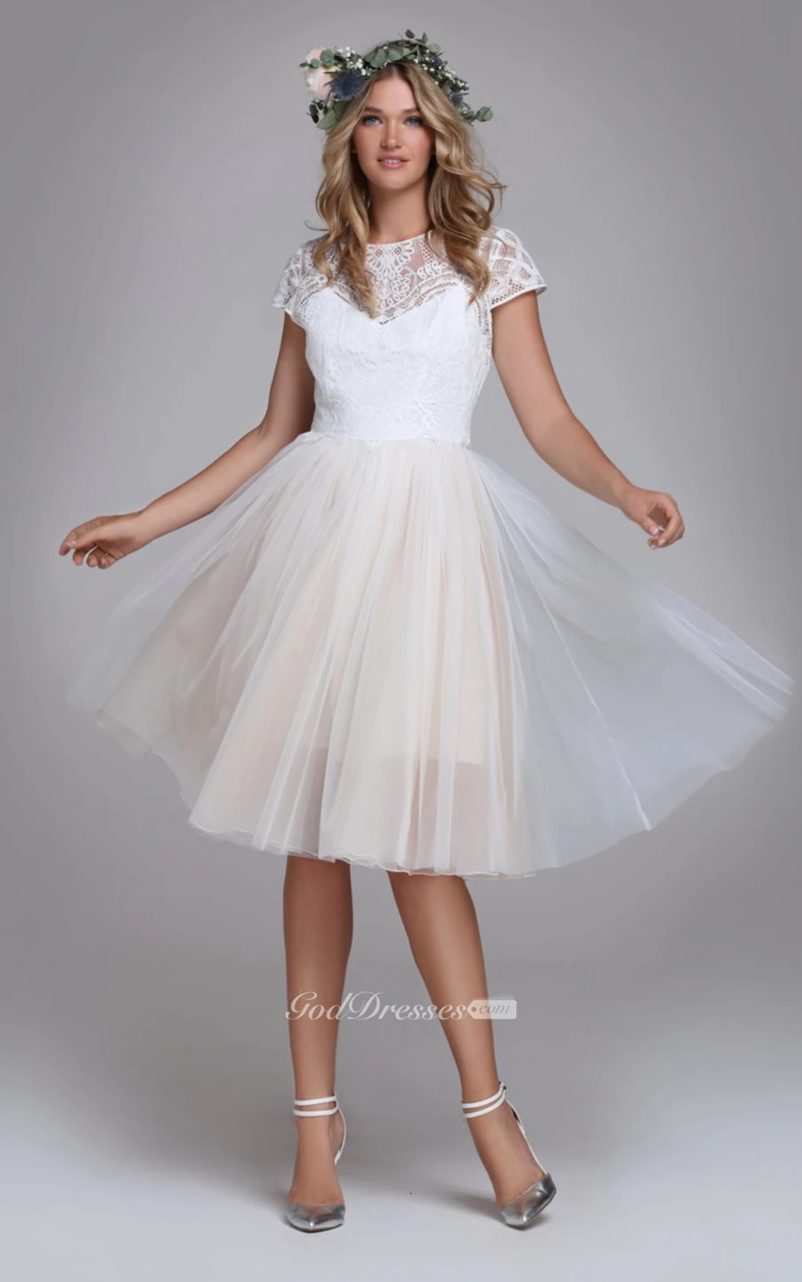 Modern A Line Lace and Tulle Knee-length Wedding Dress with Removable Bodice