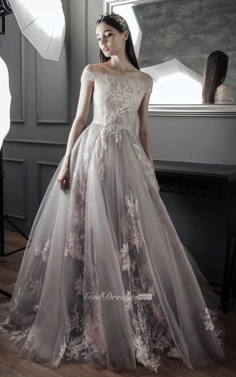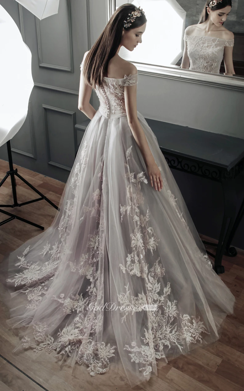 Modern Brush Train Short Sleeve Tulle A Line Button Prom Dress with Appliques