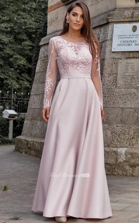 Modern Floor-length Long Sleeve Lace A Line Guest Dress with Ruching