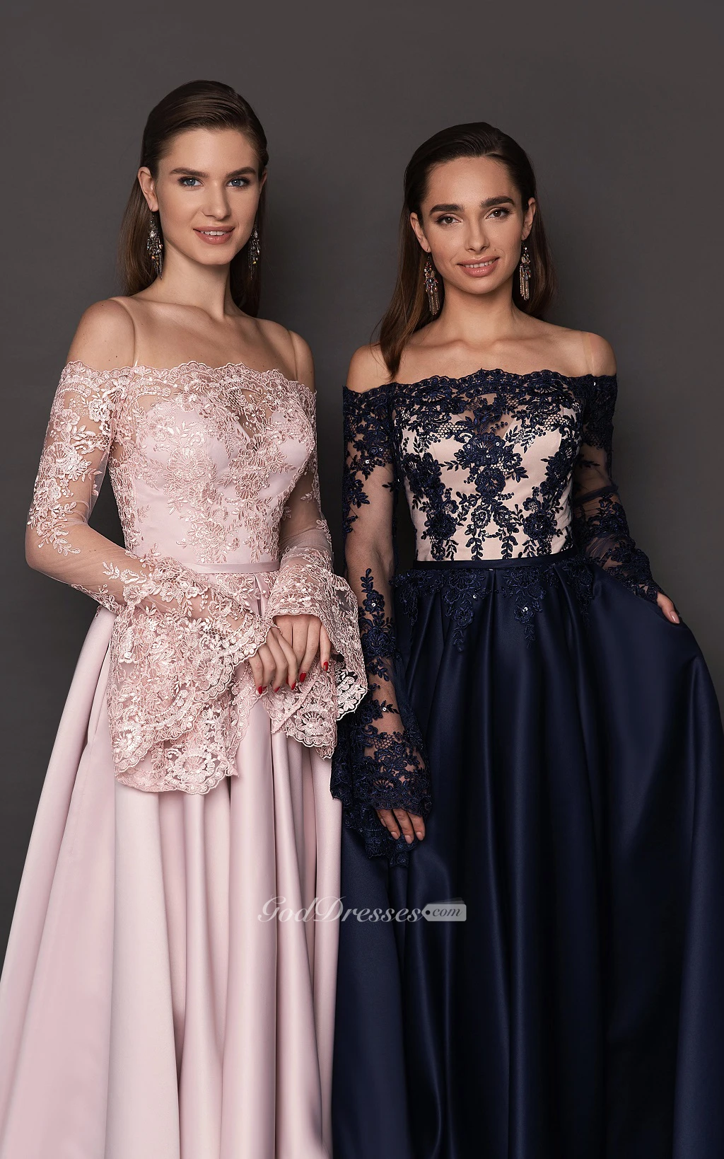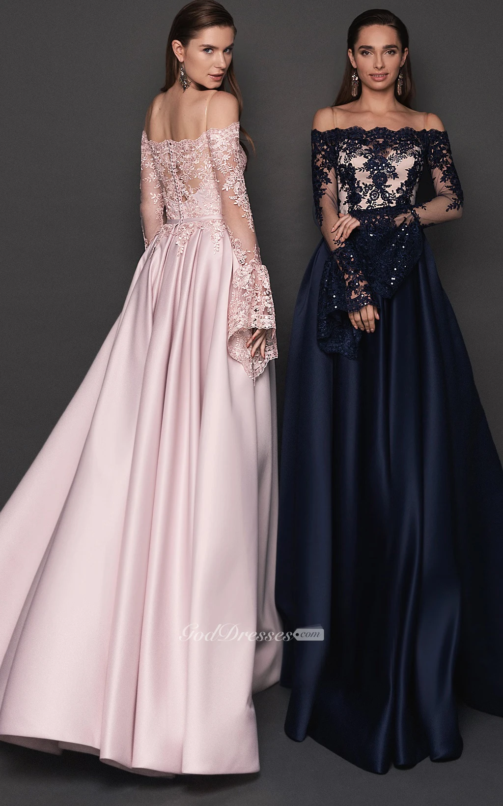 Modern Floor-length Long Sleeve Satin A Line Button Prom Dress with Ruching