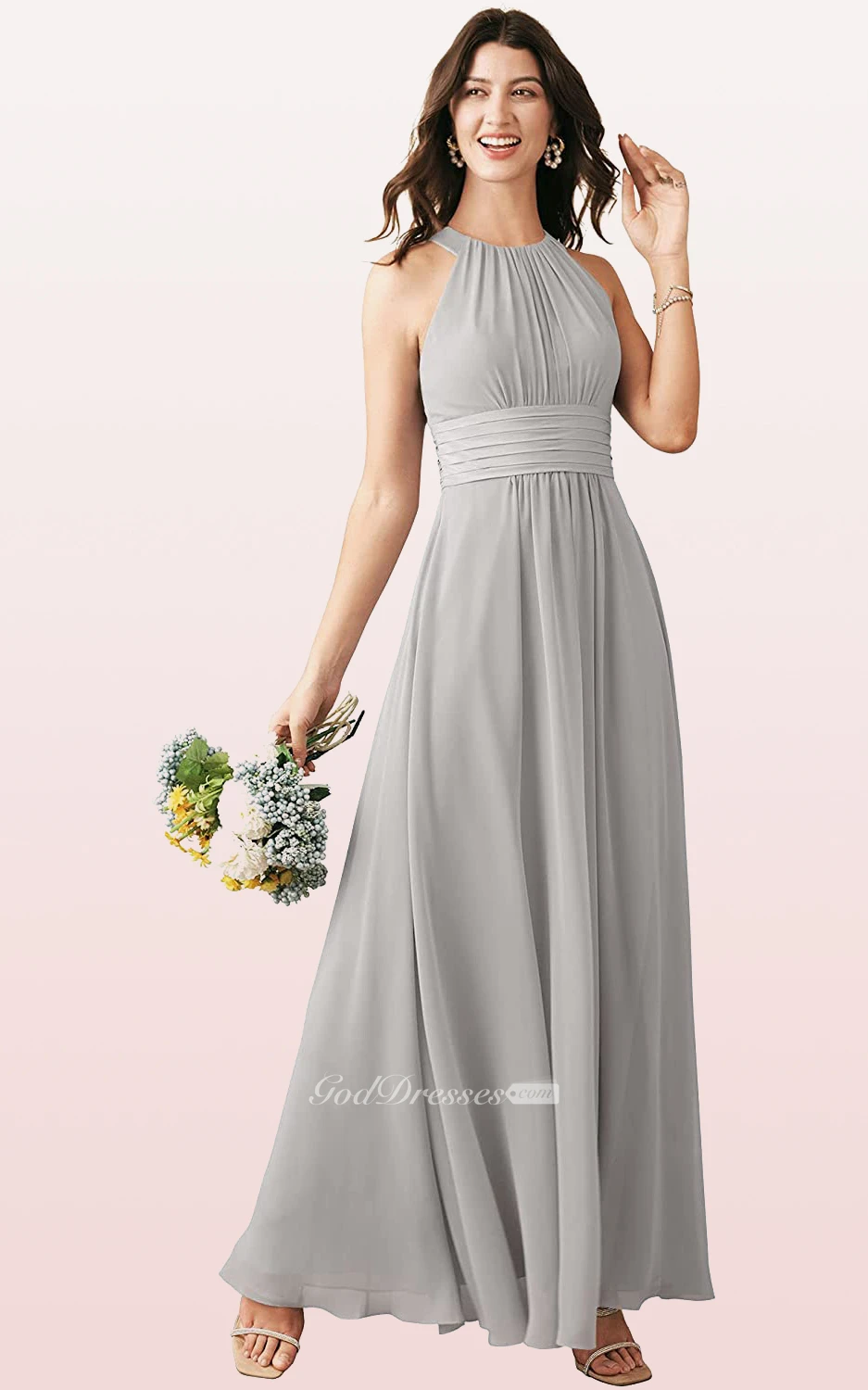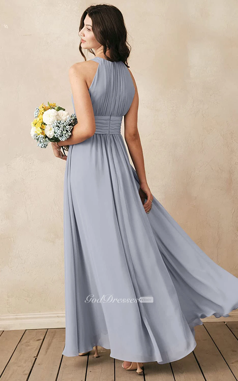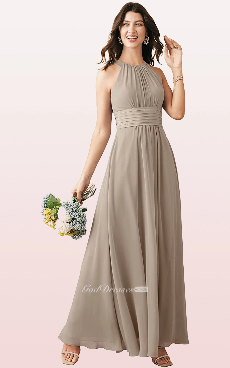 Modern Halter A Line Sleeveless Ankle-length Chiffon Bridesmaid Dress With Ruching