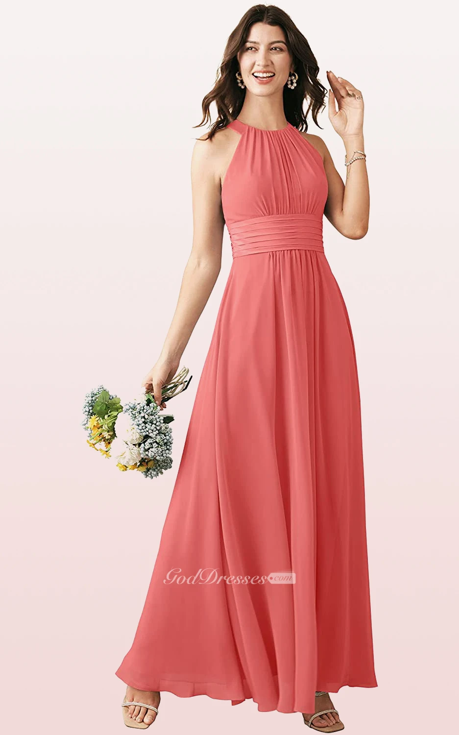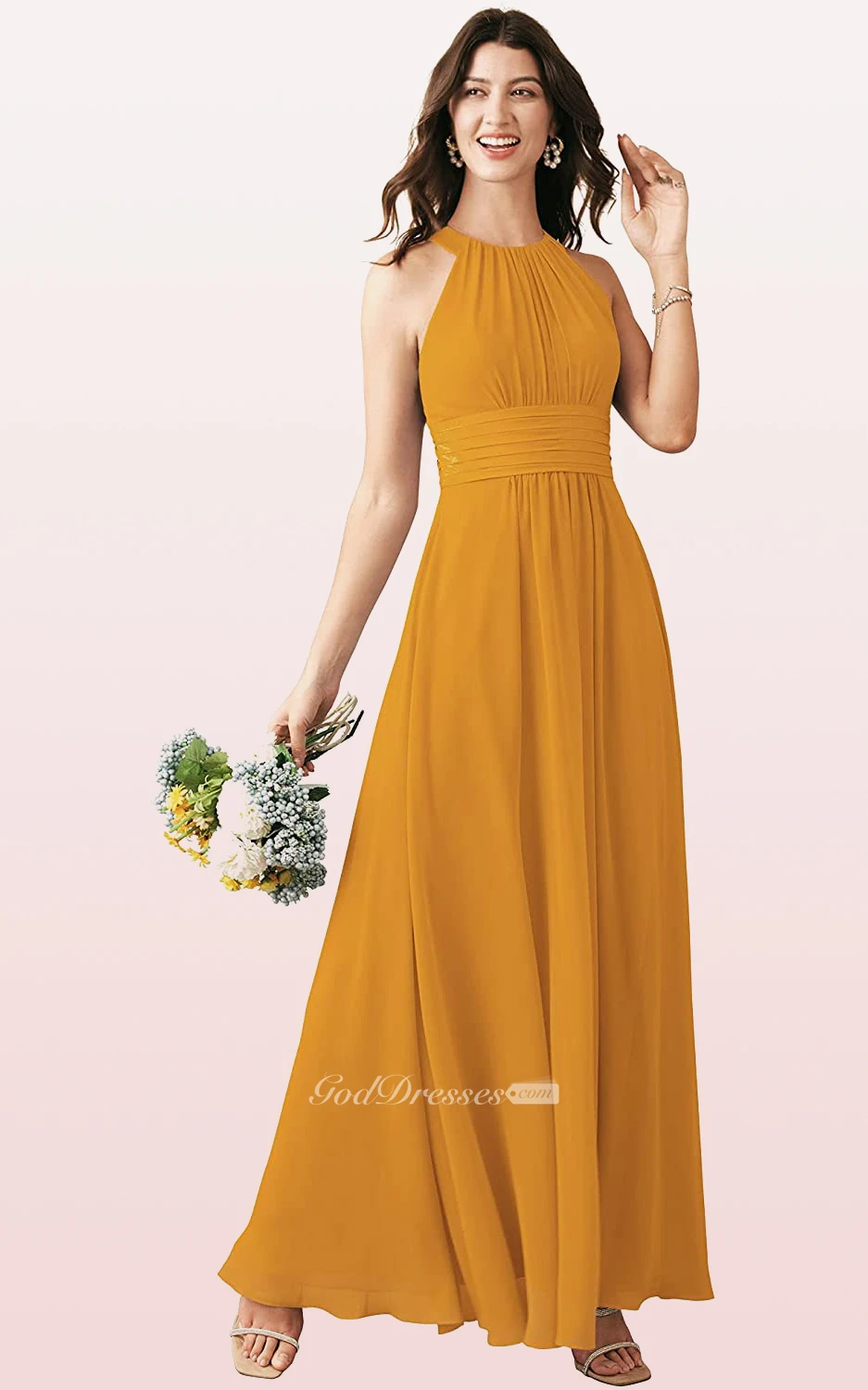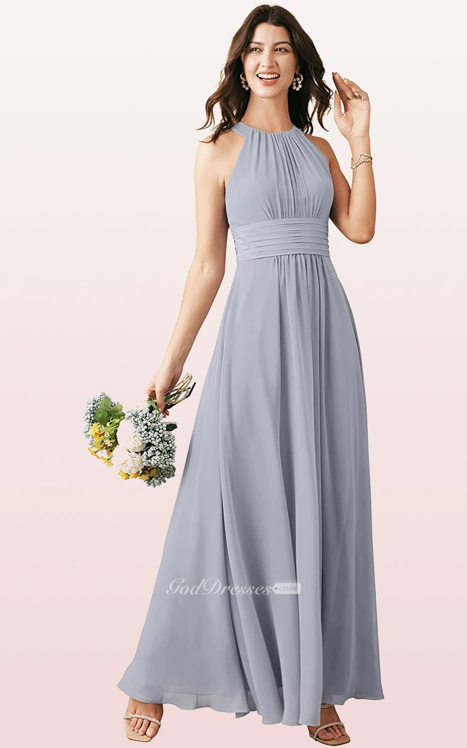 Modern Halter A Line Sleeveless Ankle-length Chiffon Bridesmaid Dress With Ruching