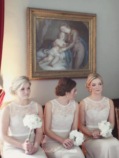 Modern Illusion A-line Lace Bridesmaid Dress Zipper Bowknot