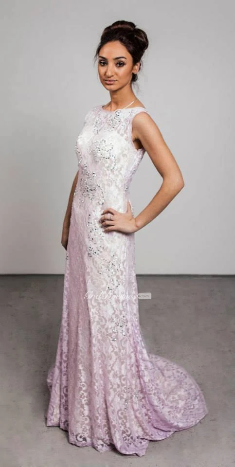 Modern Jewel Sleeveless Lace Evening Dress Sweep Train