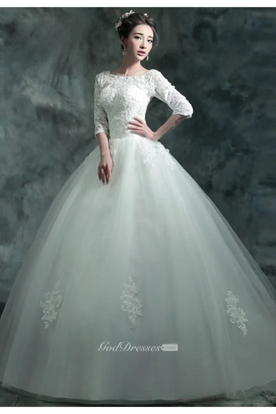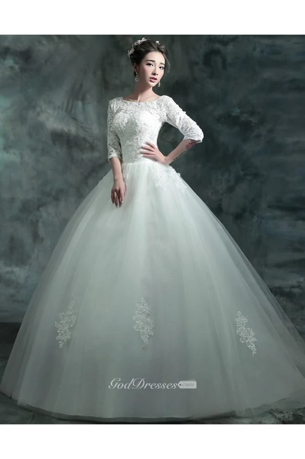 Modern Lace Appliques 3-4-Long Sleeve Wedding Dress Sweep Train