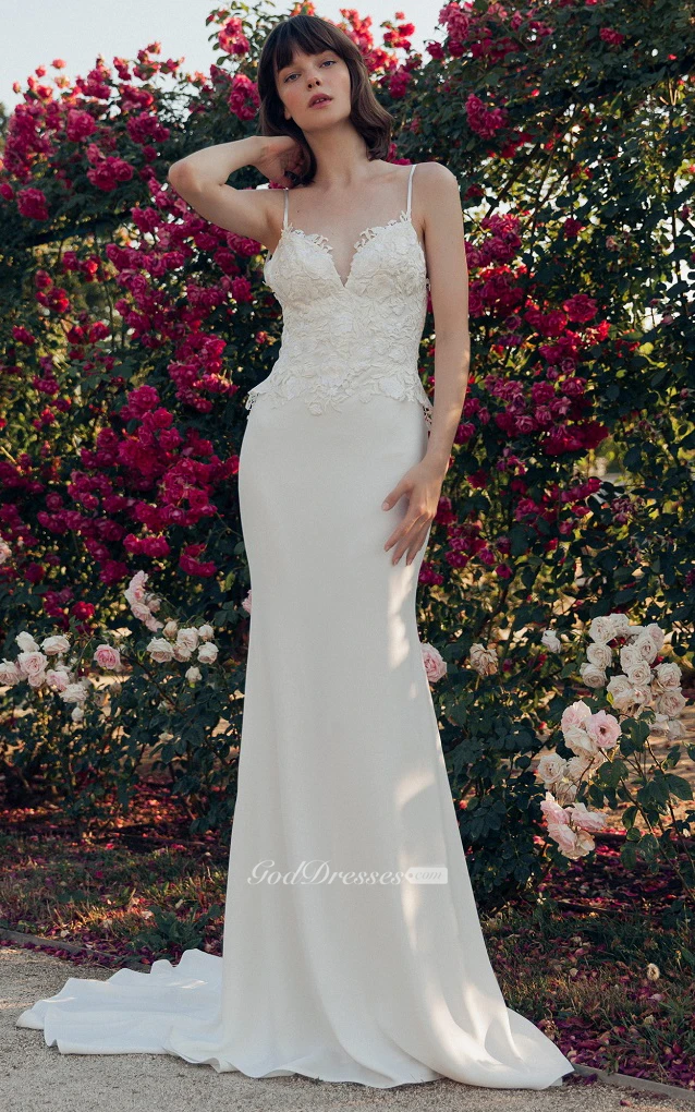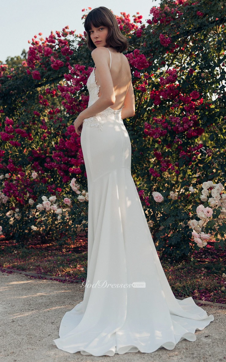 Modern Lace Floor-length Sleeveless A Line Open Back Wedding Dress with Appliques