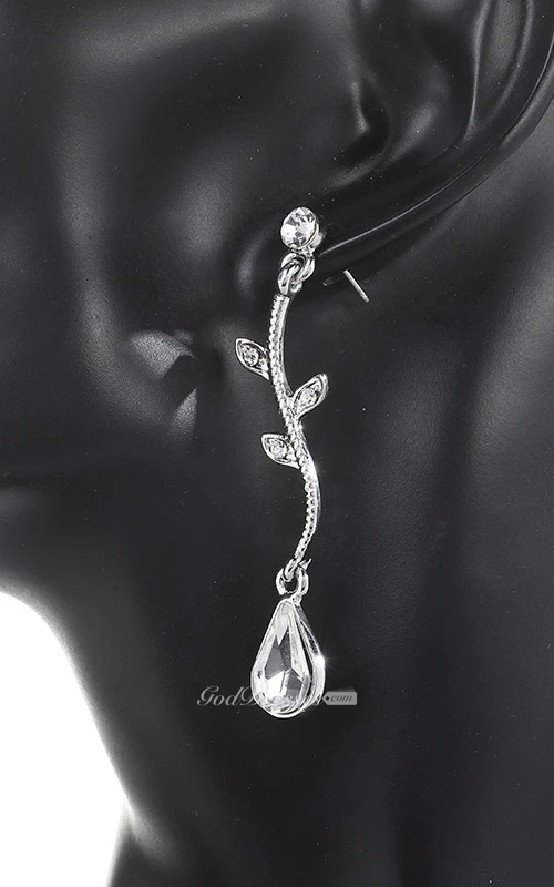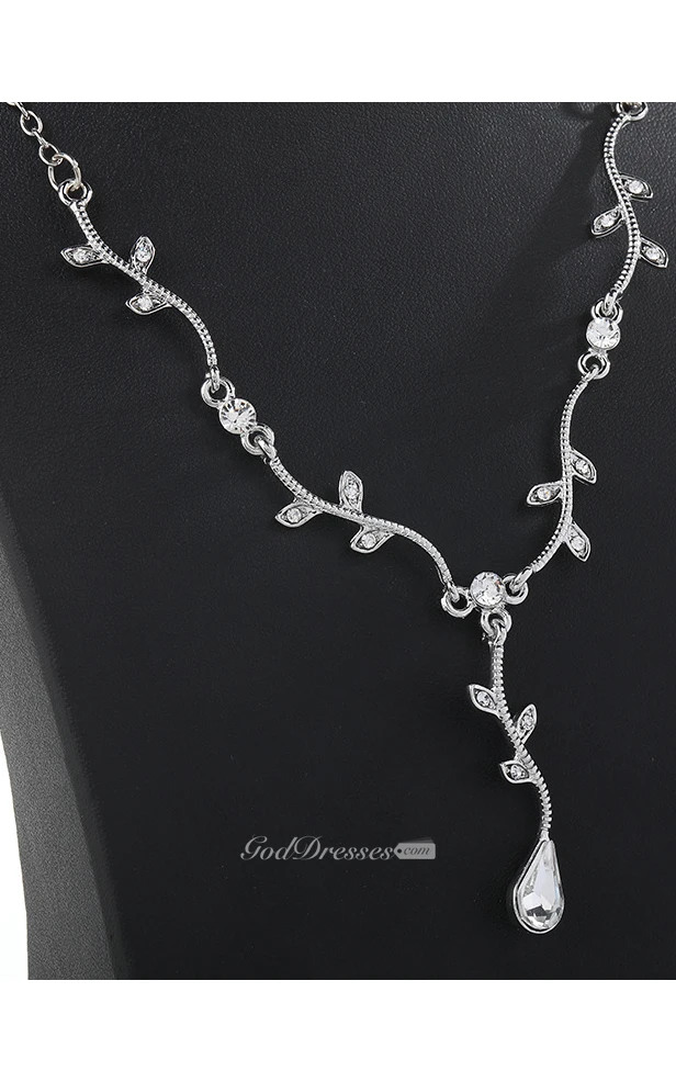 Modern Leaves and Pear Shape Rhinestone Necklace and Earrings Jewelry Set
