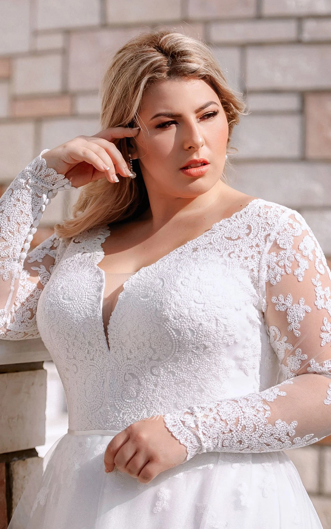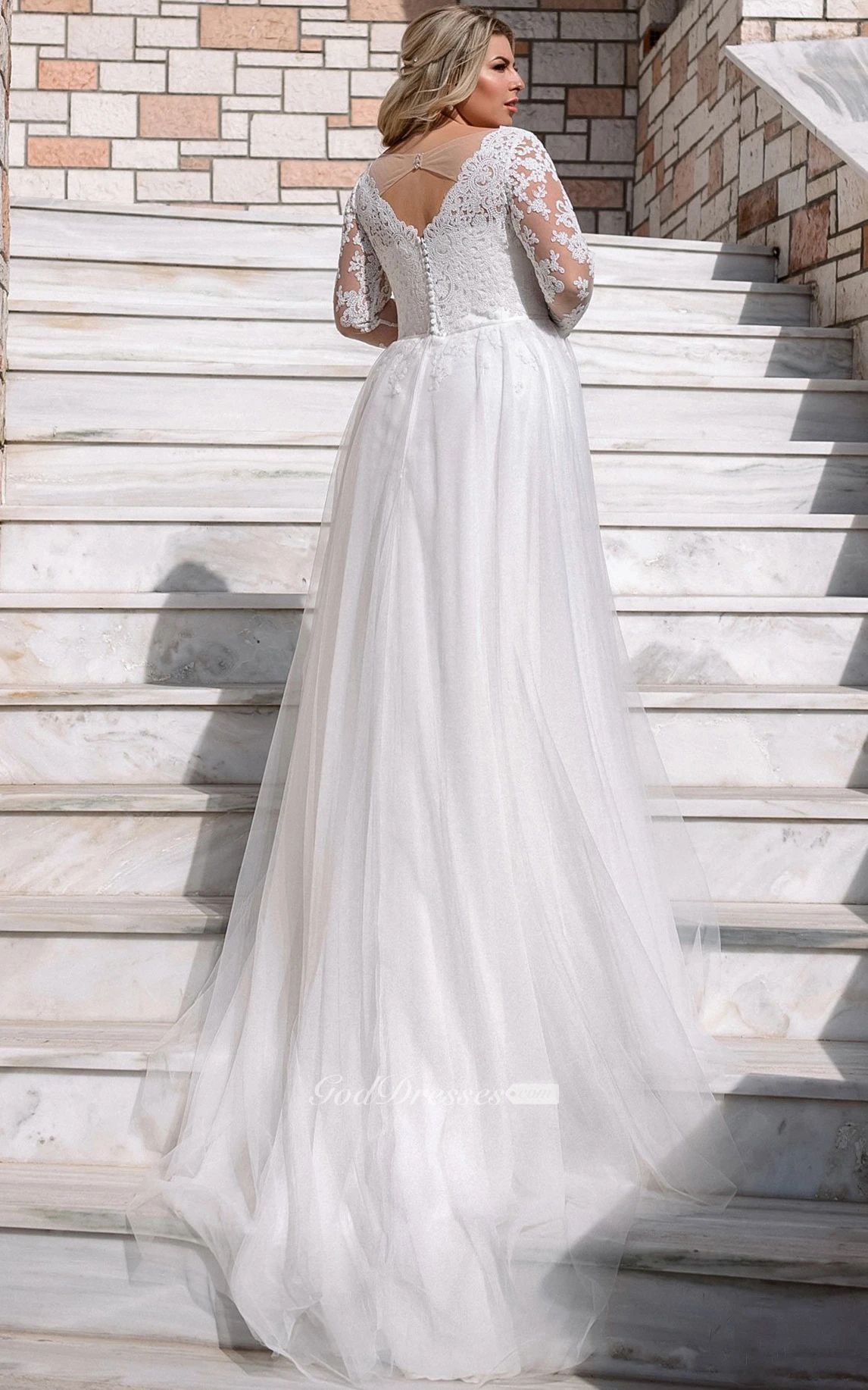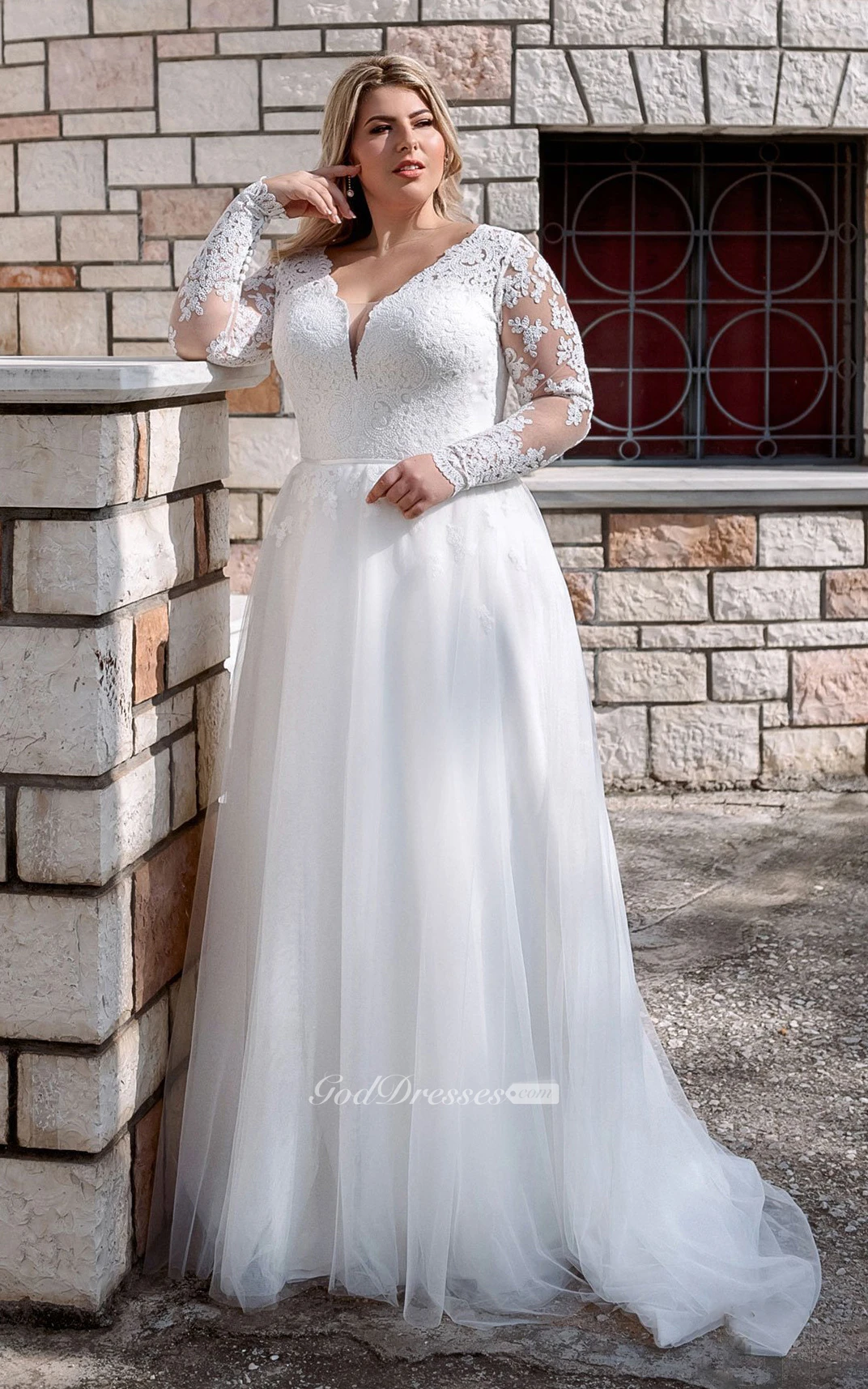 Modern Long Sleeve Floor-length Lace A Line Wedding Dress with Appliques