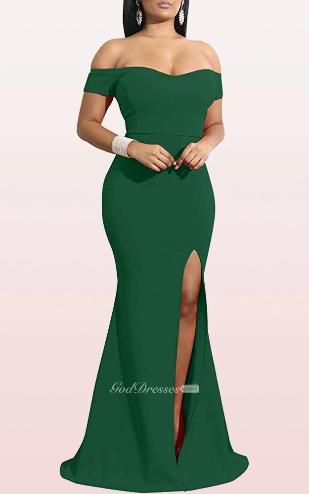 Modern Off-the-shoulder Jersey Mermaid Sleeveless Guest Formal Dress With Split Front