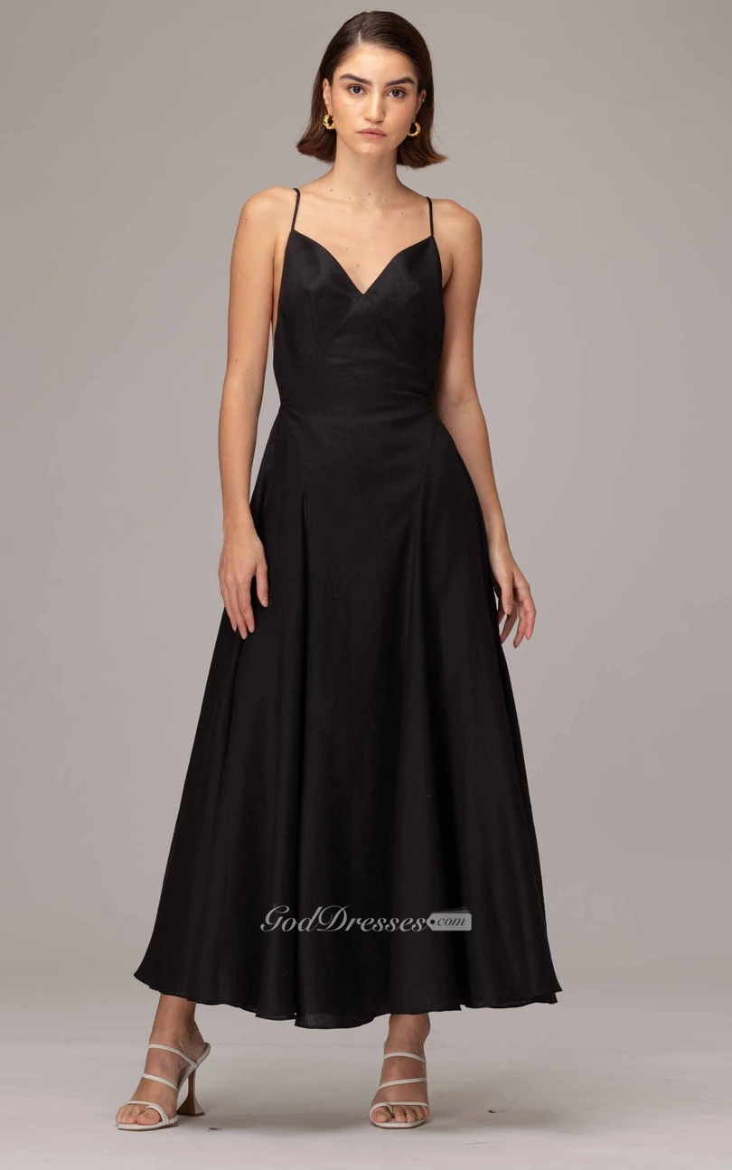 Modern Sleeveless Ankle-length A Line Satin Straps Prom Dress