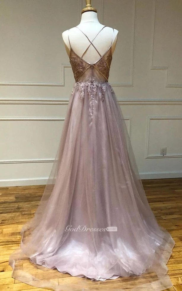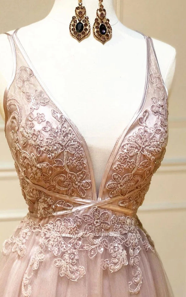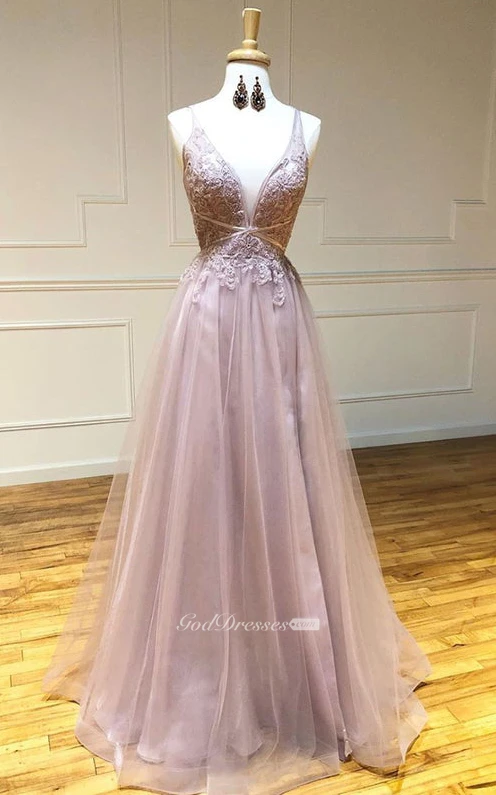 Modern Sleeveless Floor-length Lace A Line Prom Dress with Appliques