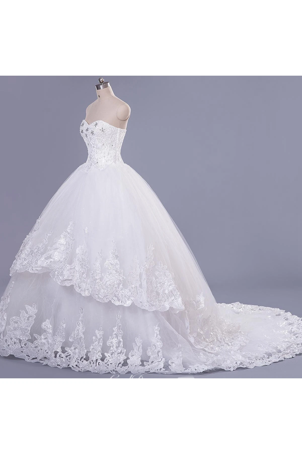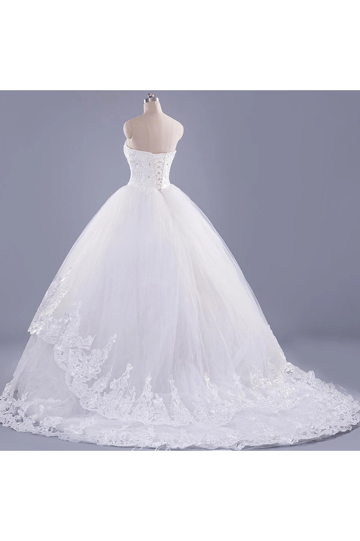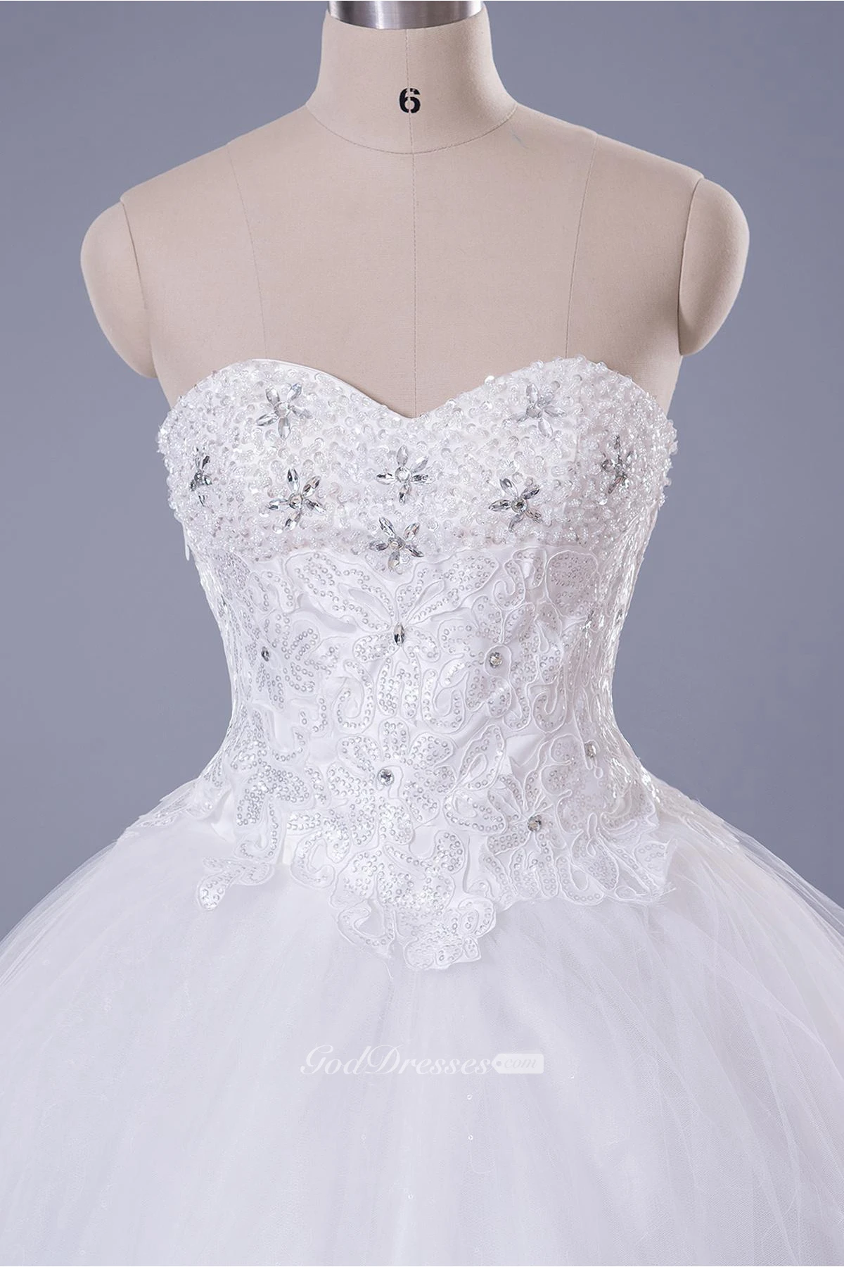 Modern Sweetheart Sleeveless Tulle Lace Wedding Dress With Beadings Lace-up
