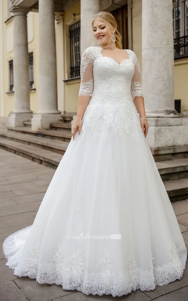 Modern Tulle Ball Gown Floor-length Half Sleeve Wedding Dress with Appliques