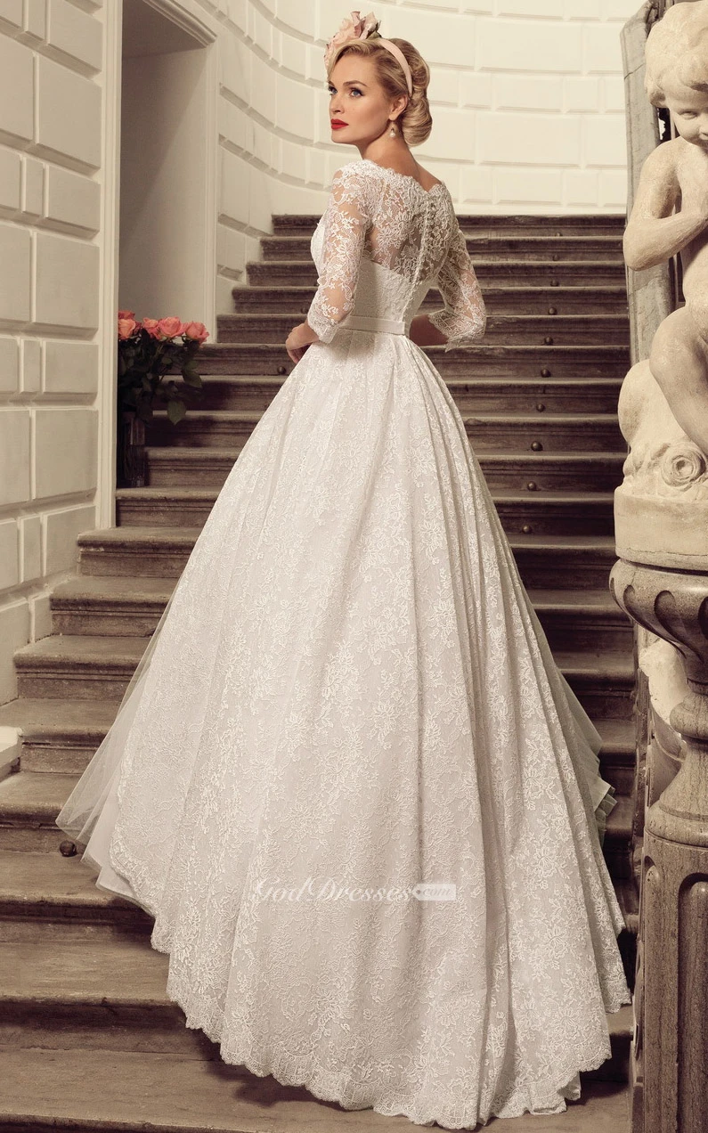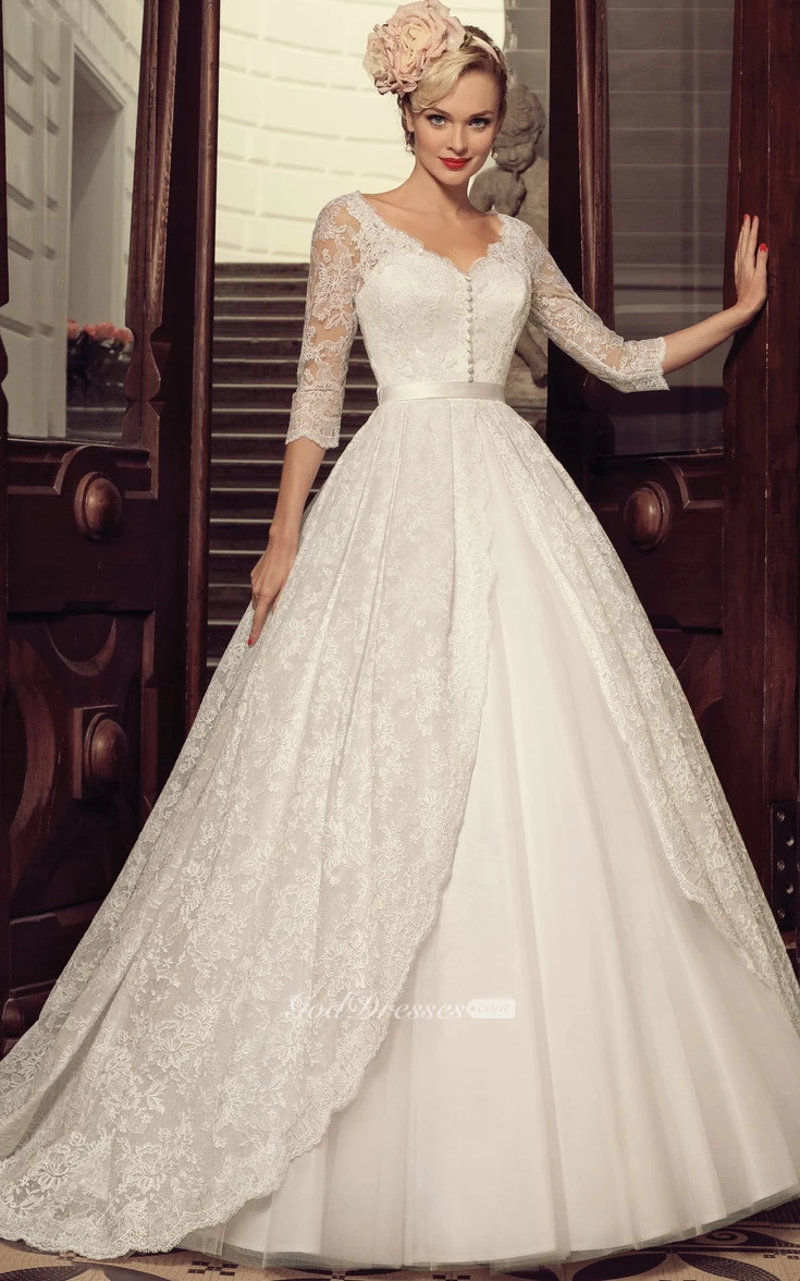 Modern Tulle Ball Gown Floor-length Half Sleeve Wedding Dress with Ruching