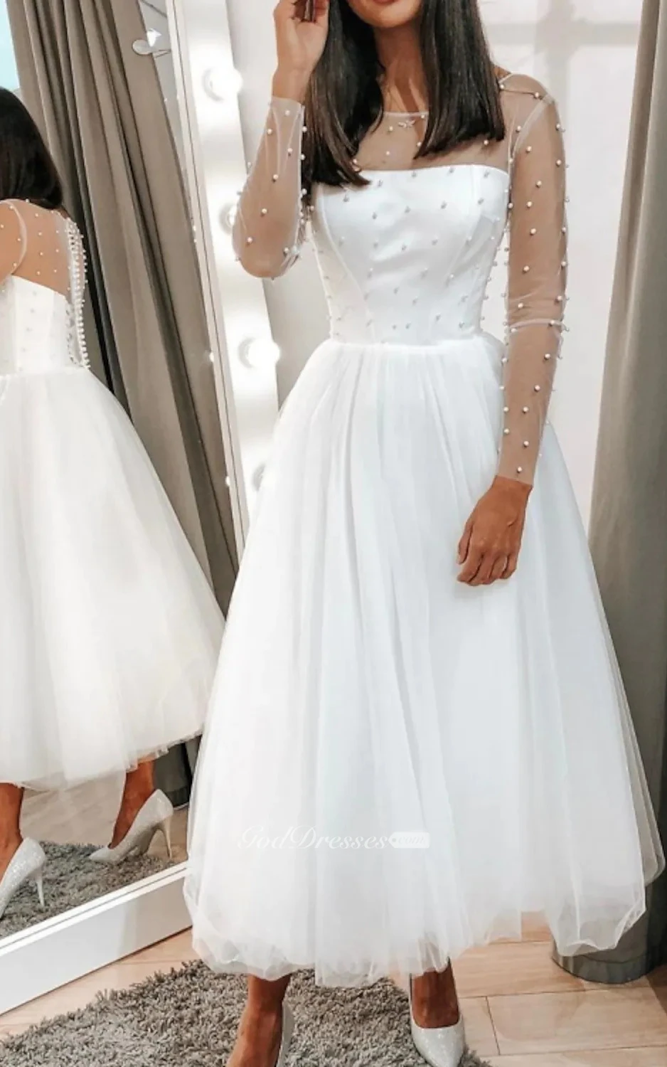 Buy the dress. I actually bought a designer dress, brought it home and hated it. So I ended up panicked went here. It was a Devine intervention because this was MY dress! We had a garden brunch wedding and it was perfect. You will not be disappointed!?