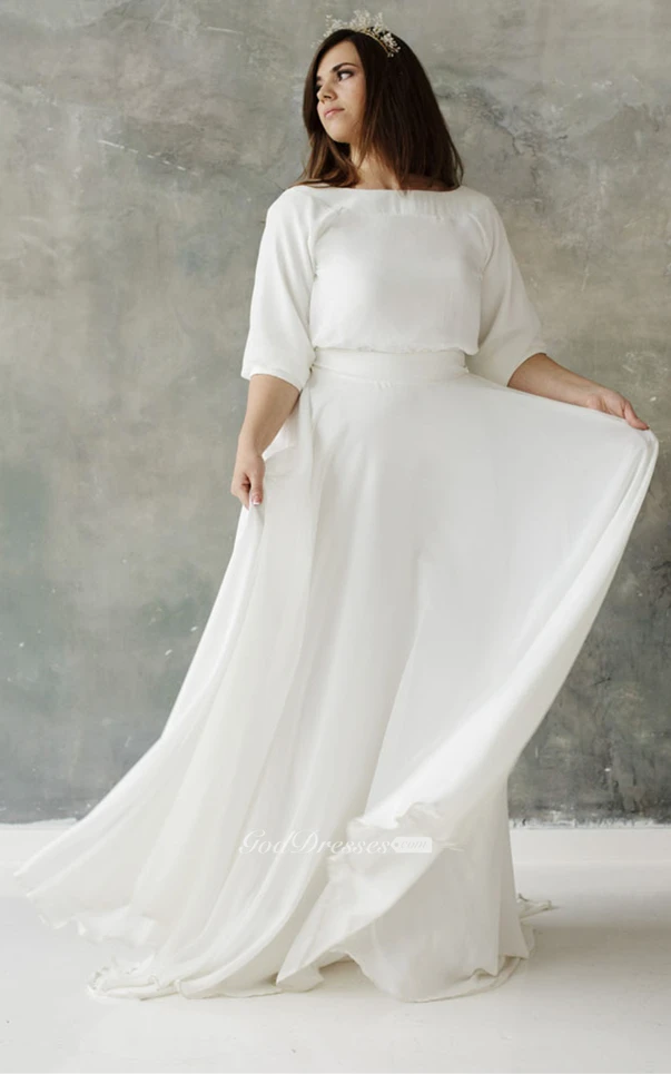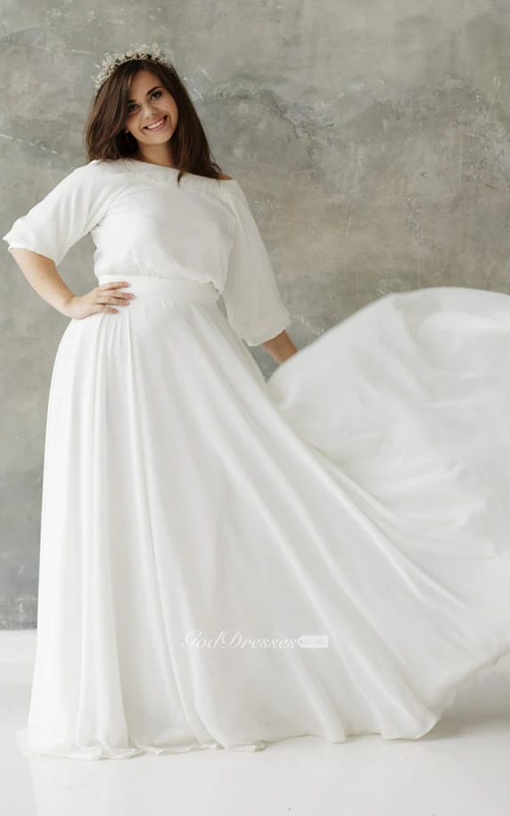 Modest Plus Size A Line Half Sleeve Chiffon Wedding Dress