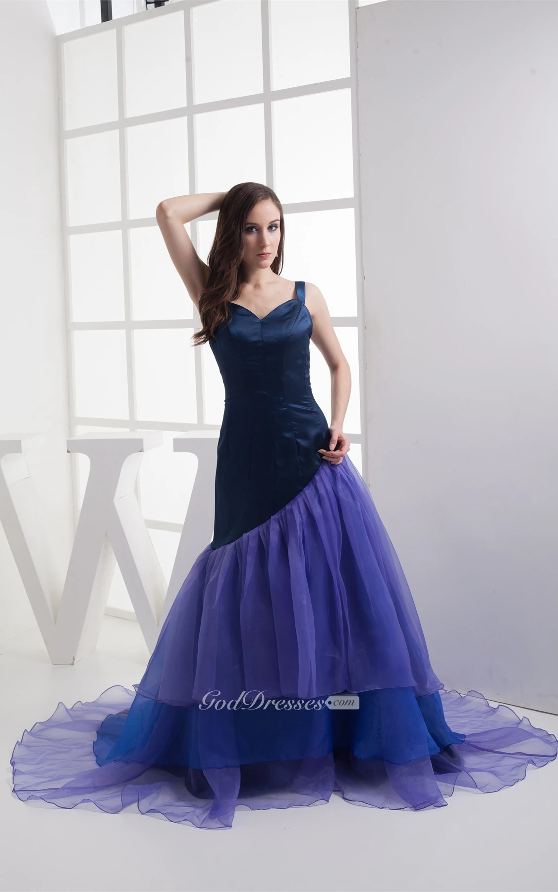 Mute-Color A-Line Pleated Gown With Tiers