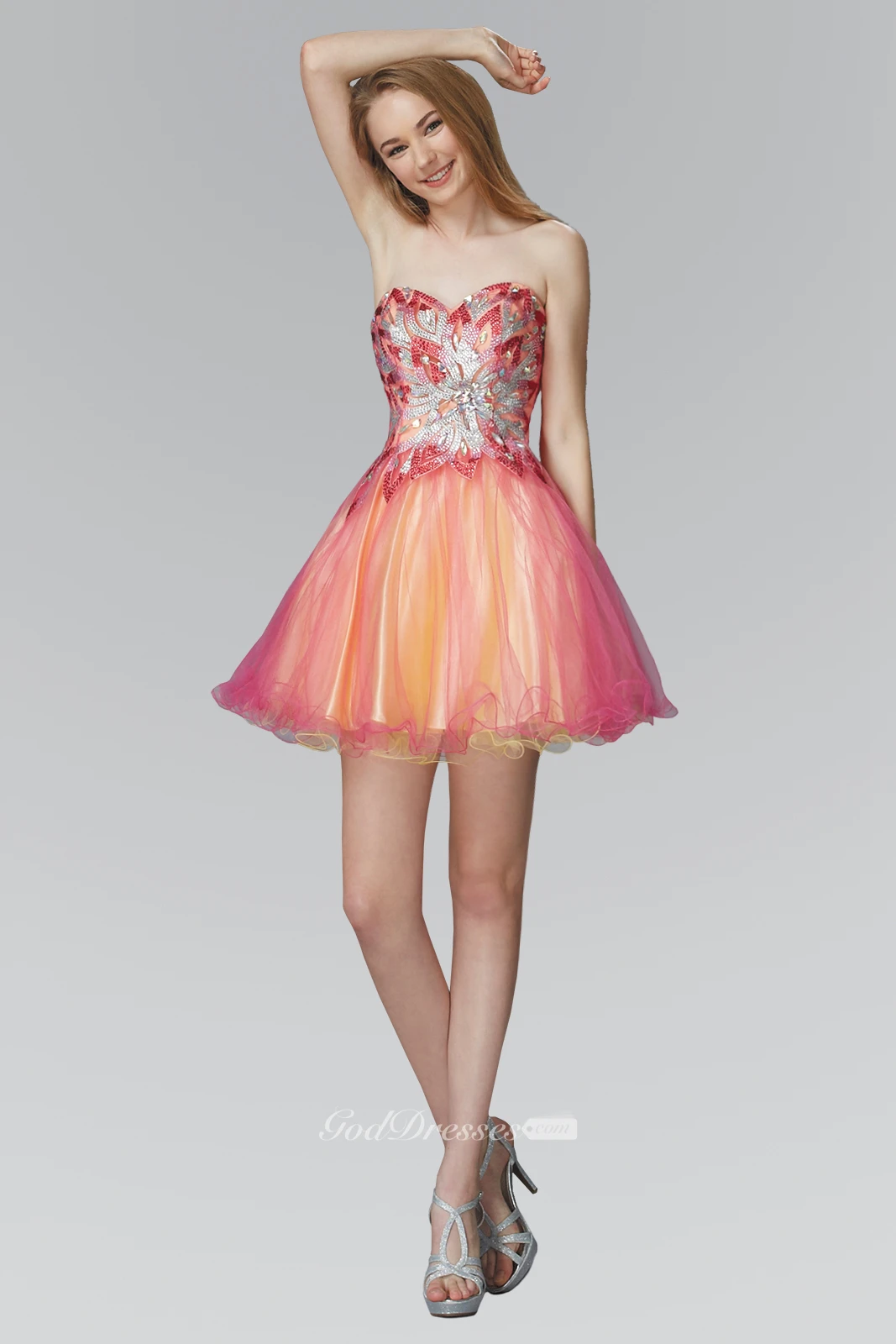 Muti-Color A-Line Mini Sweetheart Sleeveless Backless Dress With Sequins And Beading