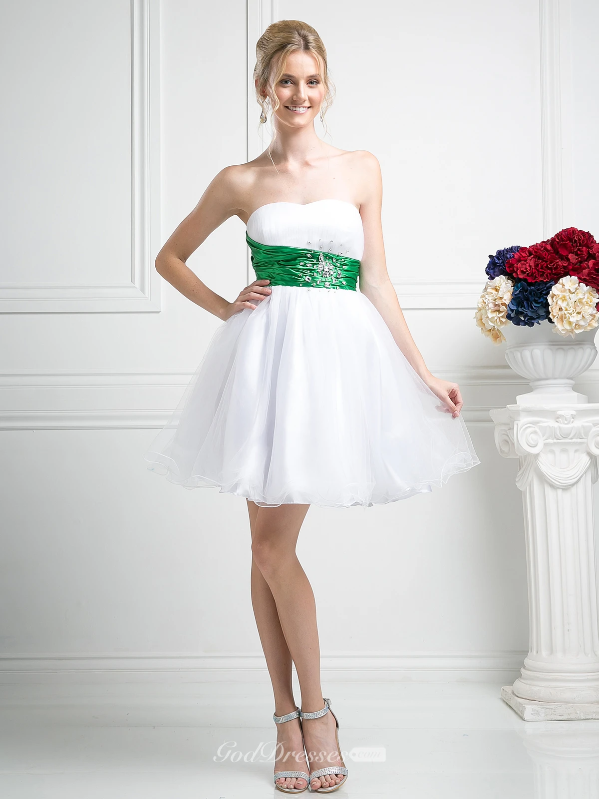 Muti-Color A-Line Short Strapless Sleeveless Backless Dress With Waist Jewellery