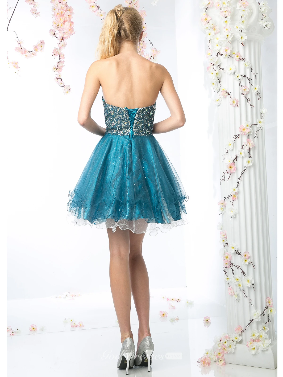 Muti-Color A-Line Short Sweetheart Sleeveless Backless Dress With Beading And Ruffles